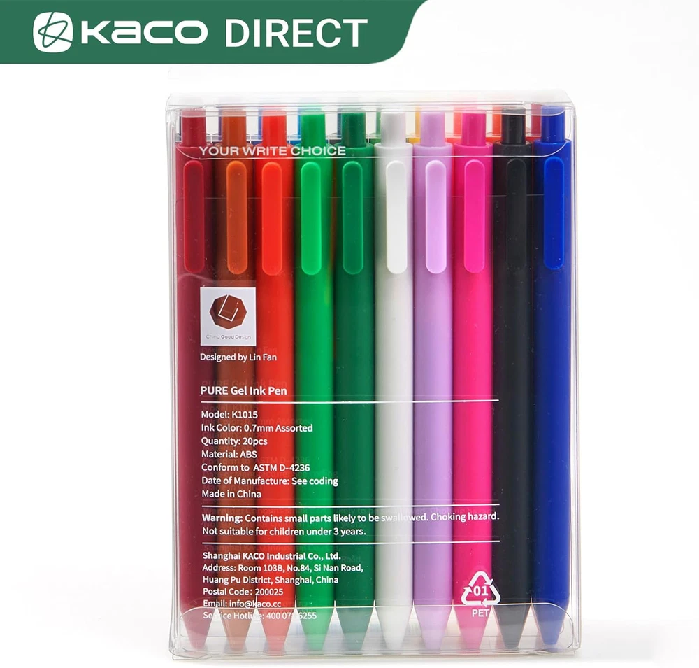 Type: Not Applicable Brand: Kaco Writing Instrument Form: Roller Ball Pen Package Dimensions: ‎5.71 x 4.06 x 1.06 inches Age Range (Description): Adult Point Type: ‎Medium Number of Items: ‎20 Closure: ‎Retractable Line Size: ‎0.7 Millimeters gtin13: 0690001409256 Color: 20 Colors Item model number: ‎PURE MPN: Not Applicable ISBN: Not Applicable EAN: 0690001409256 UPC: 690001409256 Ink Color: Multicolor Grip Type: ‎Contoured Size: ‎1 Count (Pack of 20) Manufacturer: ‎KACO Manufacturer Part Number: ‎PURE Material Type: ‎Acrylonitrile Butadiene Styrene Item Weight: ‎7.4 ounces NO BLEED AND NO SMUDGING: Write with quick drying