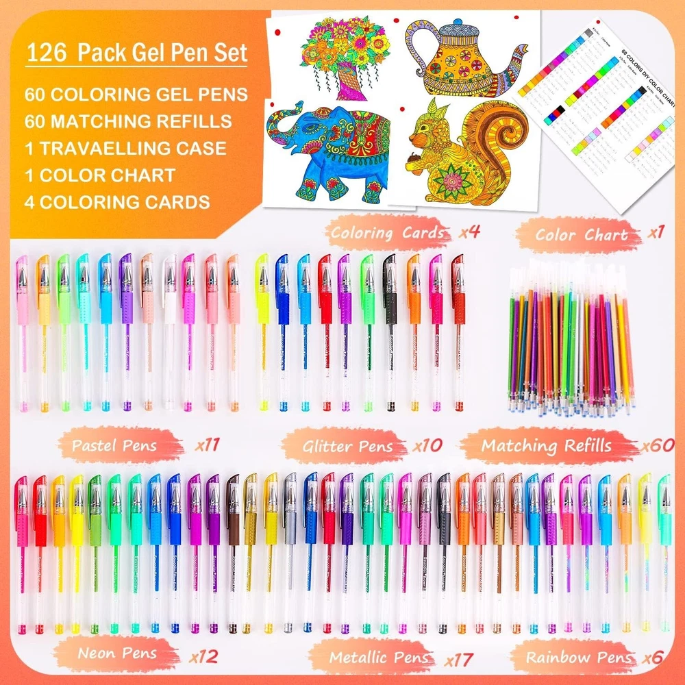 Gel Pens for Adult Coloring Books 120 Pack Artist Colored Gel Marker Pens Set
