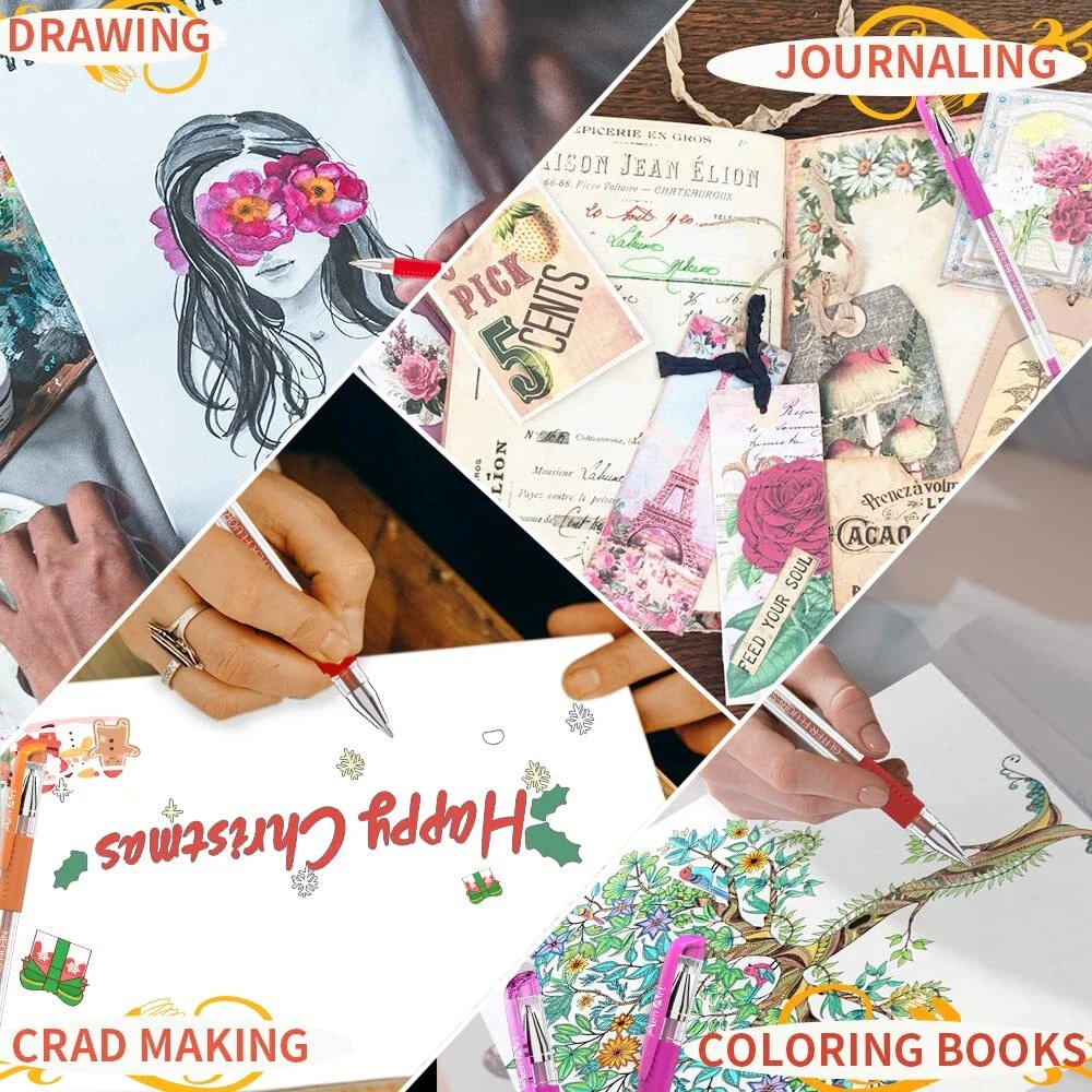 THIS IS THE NEWEST IMPROVED VERSION Super Value 120 UNIQUE Gel Pens Set for Kids Adult Coloring Book 40% MORE INK GEL PENS - LONGER LASTING SMOOTH APPLICATION You won’t run out of ink anytime soon. Just enjoy Free-Flowing, Smooth Gliding & Crisp Application. Each gel pen set is packaged in a PORTABLE STORAGE CASE which makes it easy for carrying, so you can take your Gel Pen Set wherever you go for non-stop creativity. Aen Art 120 Unique Gel Pen Set contains 120 INDIVIDULE colors. It has 28 Glitter, 16 Neon-Glitter, 20 Standard, 20 Metallic Colors, 18 Pastel, 18 Neon colors. We believe this set will meet all your need when choosing gel pen Each gel pen features soft grip and 0.8-1.0mm durable tip. Premium material makes our pens glide smoothly than others. You will like the way you can colour precisely in the tiny details of your adult colouring books Upgraded gel pens come with 40% more ink, can coloring more pages than before. Do not need find refills whenever doing artworks, writing, drawing, crafting, doodling, art designs and journaling We print color names and color codes on each gel pen, so It’s convenient and easy taking. Also the durable case keep pens securely in place with individual inserts. NOW spend less money to get a generous gel pen set Acid-free and non-toxic ink doesn’t smear, fade, or skip. Safe to give our gel pens to kids and girls. Why Not Consider giving coloring supplier as a gift? Please feel free to contact us if you have any questions.