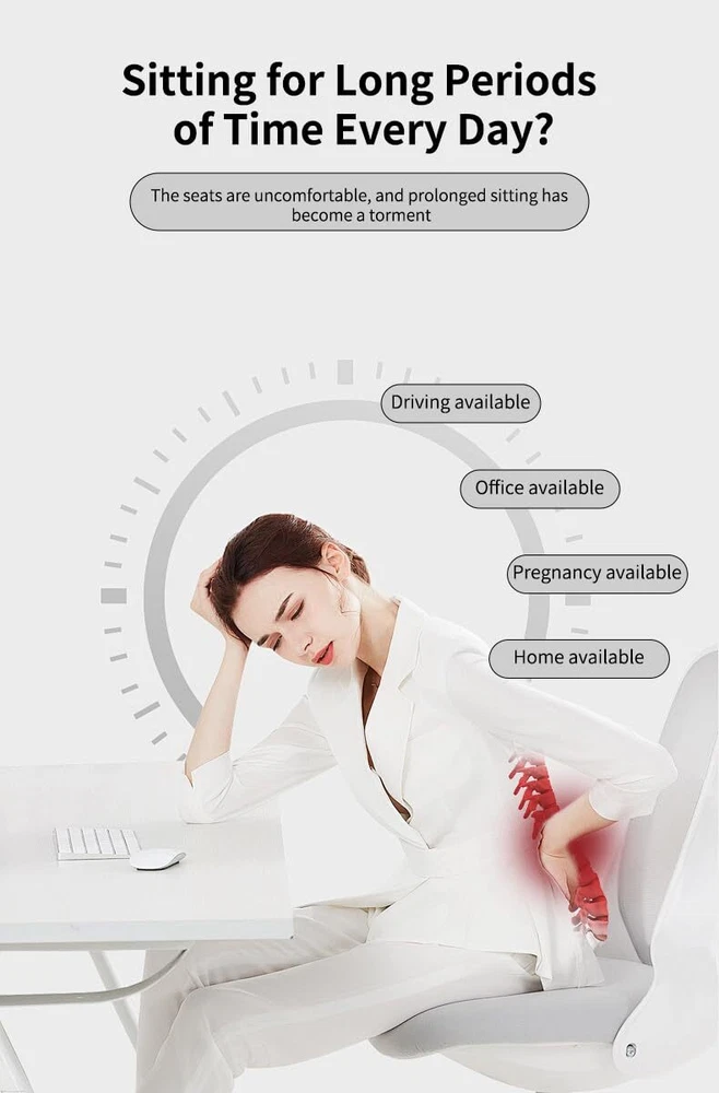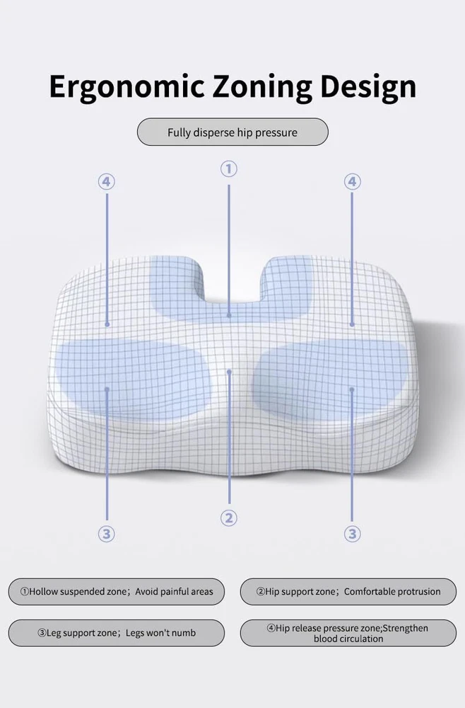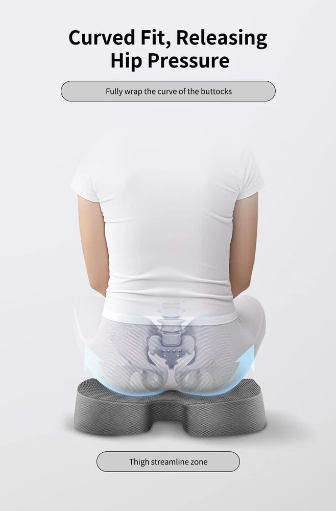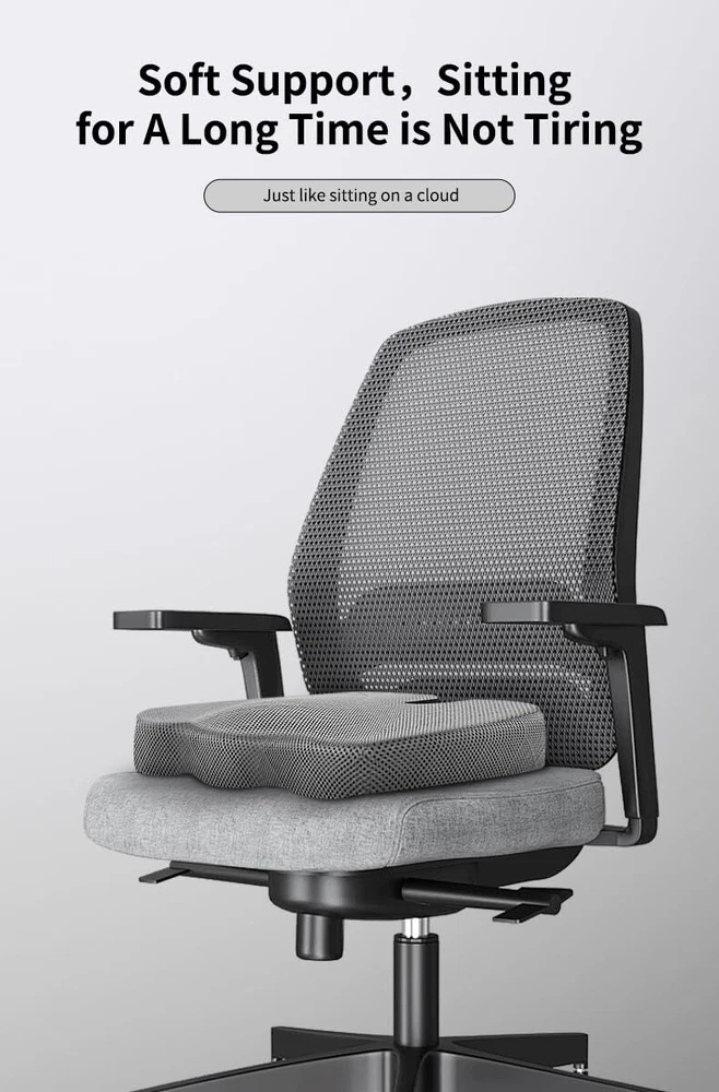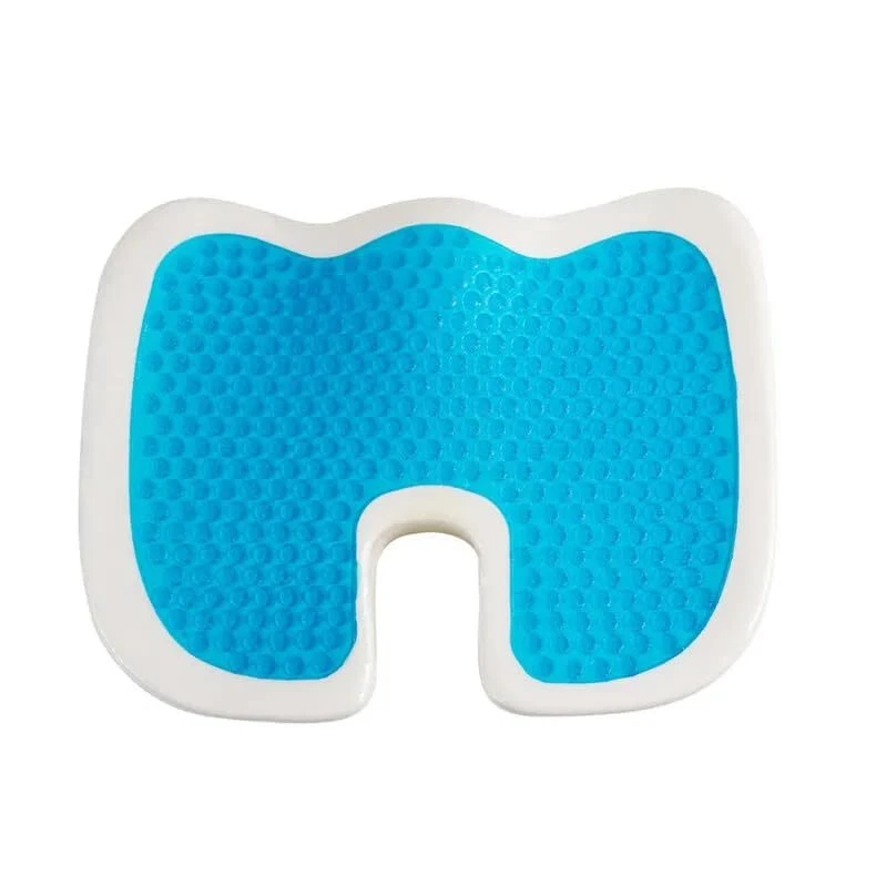Upgrade your seating experience with this innovative cushion seat. Designed to provide exceptional comfort, it features a unique combination of materials. The soft, plush black cushion molds perfectly to your body, offering superior support and pressure relief. Complementing this is a contoured white base with a mesmerizing gel-like blue surface that gently conforms to your shape. This ergonomic design promotes proper spinal alignment and helps alleviate discomfort from prolonged sitting. Lightweight and portable, it's perfect for use at home, the office, or on the go. Enhance your comfort and productivity with this ingenious cushion seat. Ergonomic Design: Contoured seat cushion provides orthopedic support to relieve pressure on the tailbone and promote proper spinal alignment, making it ideal for tailbone pain, sciatica relief, and improved posture. Dual-Density Foam: Features a firm base layer for durability and a soft gel-infused top layer for plush comfort during extended sitting sessions. Breathable Mesh:The removable, machine-washable cover is designed to maintain airflow and keep the cushion fresh and clean with easy care. Non-Slip Rubber Bottom: The rubberized underside grips securely to prevent the cushion from sliding out of position, ensuring safety and stability. Portable and Versatile: Perfect for office chairs, car seats, wheelchairs, gaming chairs, airplanes, and anywhere additional cushioning is needed for improved posture and comfort. Cooling Gel Technology: Gel-infused memory foam enhances airflow and prevents heat buildup, ensuring you stay cool and comfortable, even during long hours. Pain Relief and Posture Support: Designed to assist with tailbone injuries, sciatica, herniated discs, or improving posture for those who spend long hours sitting. Premium Quality Materials: Made with 100% premium gel memory foam on the top for long-lasting durability and unmatched comfort.