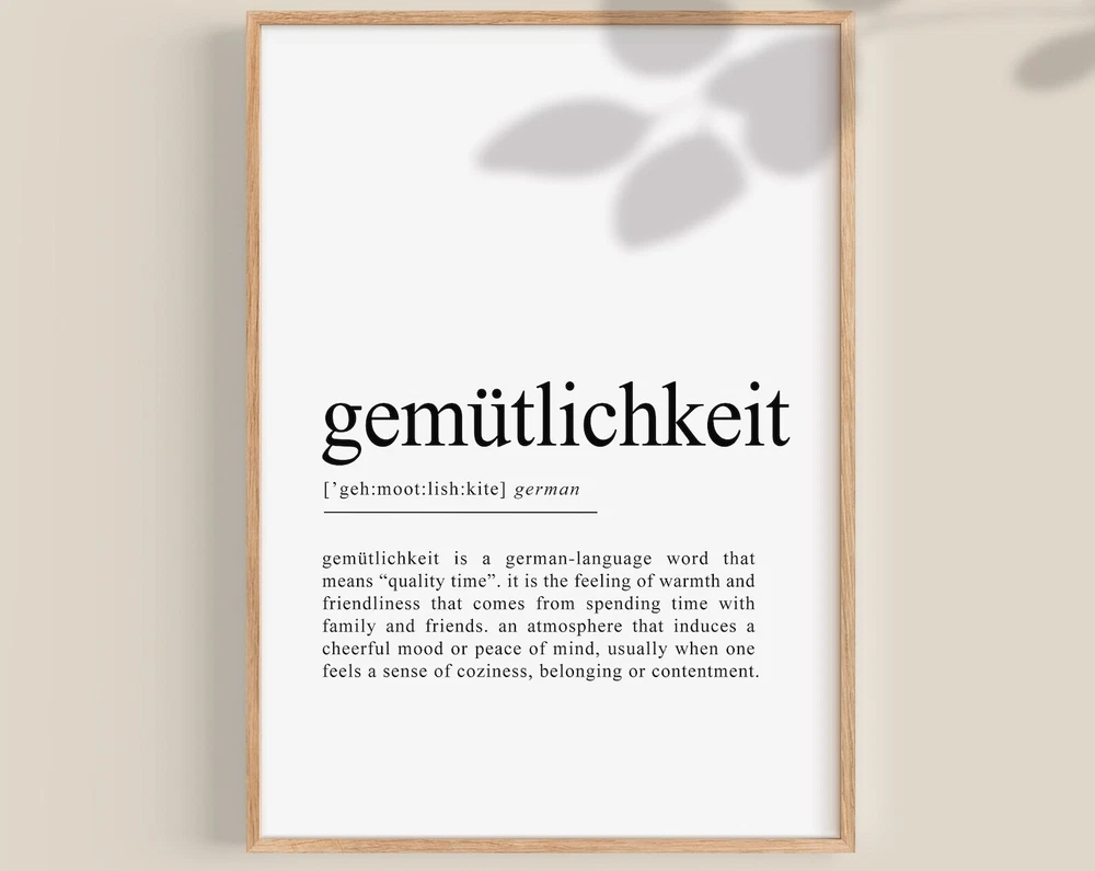 Gemütlichkeit Print Gemütlichkeit Poster Gemütlichkeit Definition German Gifts German Wall Art Germany Print Hygge Material: Premium luster photo paper Print type: Inkjet printing One side printed + The finish provides the highest possible resolution and color saturation + Lasts up to 200 years in color and 400 years in black-and-white + Printed on high-quality resin-coated photo base paper medium + Posters can be hung with double-sided tape, tacks, or framed + Hand washing with a gentle cry cloth is recommended for extended durability I will hand select the best choice of paper for your chosen design to ensure top quality results for a beautiful, bright and luxurious print. All prints are sealed in cellophane slips for protection during transportation, and are shipped in a protective cardboard envelope.