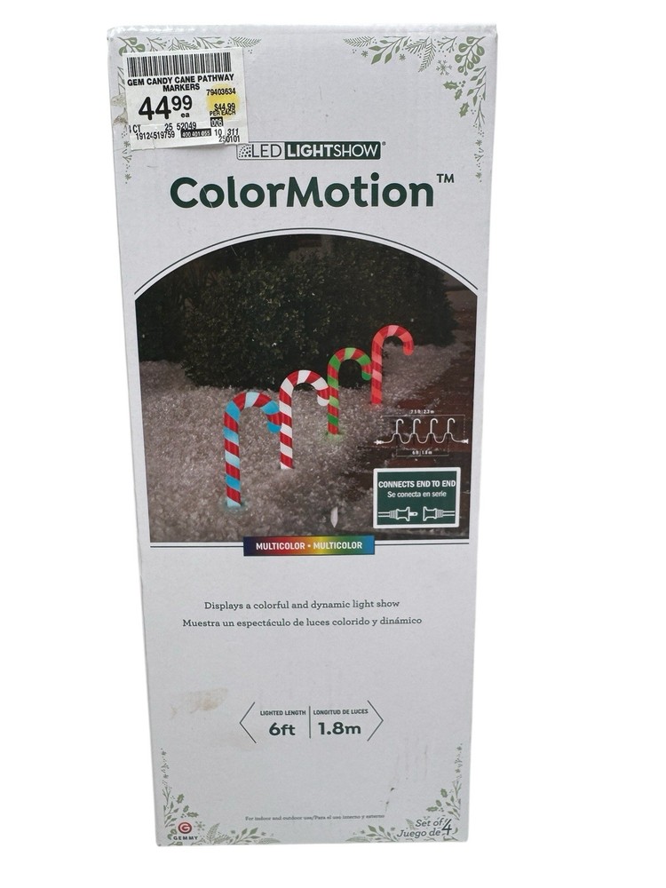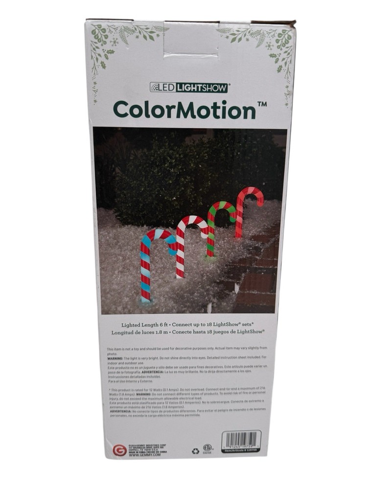Gemmy LED Lightshow Color Motion 4 Candy Cane Pathway Christmas Decor Lights 6ft