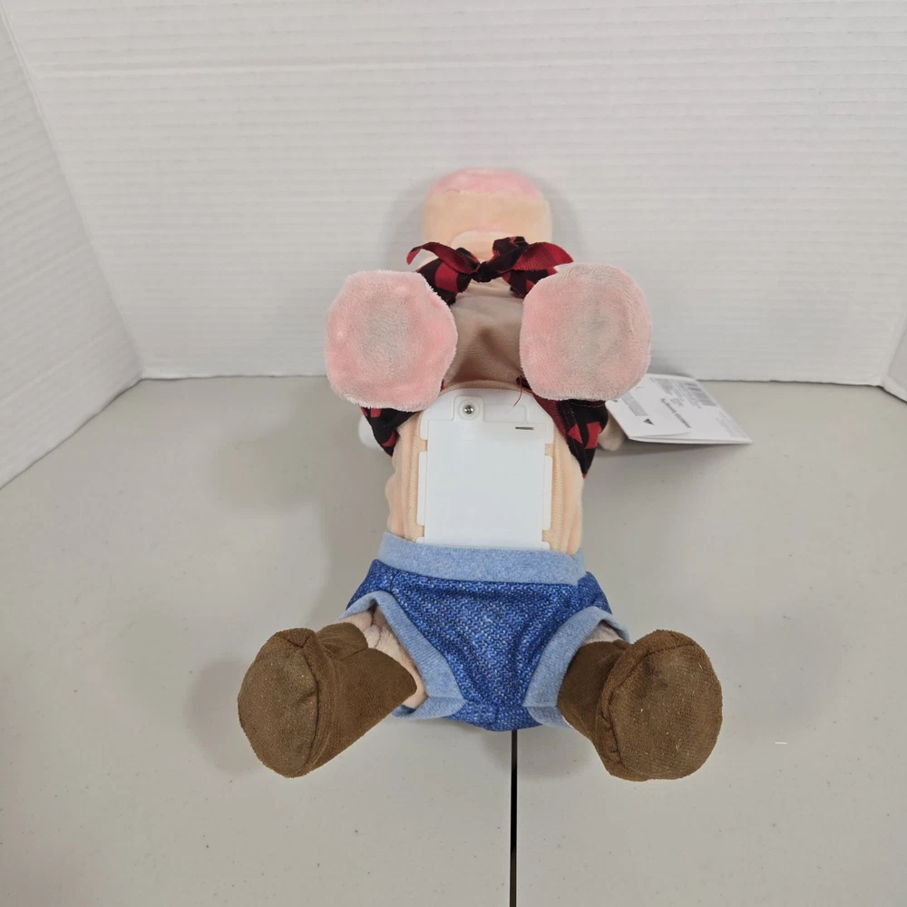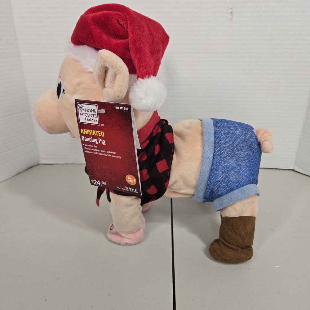 The Gemmy Animated Dancing Pig Plush is a medium-sized figurine featuring a pink plush fabric pig character that dances to the song "Pretty Girls Walk." This Christmas-themed item is powered by AA batteries and stands at 10 inches tall with a length of 12 inches. It is part of the Holiday Home Accents collection by Gemmy Industries and is suitable for indoor use, making it a fun and festive holiday decoration for teens, boys, girls, adults, and kids who enjoy farm animals and animated figurines. *This item is new with tags but does not work correctly. Legs do not move as well as they should. One leg moves the other one doesn't. *Please inspect all photos of item(s) before purchasing. If you have any questions, please feel free to ask.