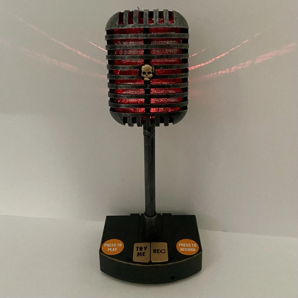 Measures approx 11” tall. Plays various phrases or press to record your own. Motion sense and light up. Requires 3 AAA batteries (not included). Battery compartment is clean. Tested and working. See video. Ships from smoke free home.