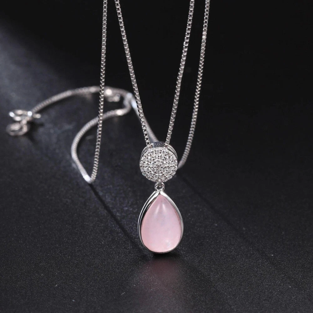 Base Metal:Fine Silver, 925 Parts Per 1000Style:PendantBrand:UnbrandedMain Stone Color:PinkMain Stone:ChalcedonyCertification:GTCType:NecklaceSecondary Stone:Cubic ZirconiaMain Stone Shape:PearMain Stone Creation:NaturalMetal Purity:925 Parts Per 1000Theme:NatureNecklace Length:45cmChain Type:LinkPendant Shape:Water DropClosure:Spring RingOccasion:Anniversary, Birthday, Christmas, Engagement, Graduation, Mother's Day, Valentine's Day, WeddingMetal:925 Sterling SilverColor:Silver
