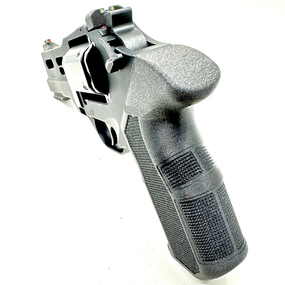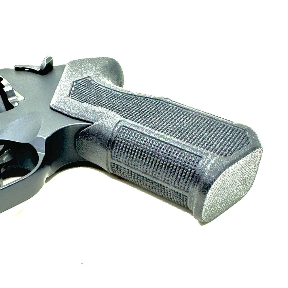 The Gen 3 Tactical Grip for the Chiappa Rhino is the culmination of continuous improvement and new design and manufacturing technologies and techniques. Available in an array of colors, the Gen 3 retains and enhances the simplicity and 1911-style, natural grip angle of the Gen 1, and the ergonomics and lock-in grip of the Gen 2. An all-new "Pyramid" texture pattern is introduced that provides an aggressive yet comfortable grip, even with wet hands. The beavertail is extended beyond the Gen 2 and provides hammer and cylinder release access, and a sharp reduction of the butt of the grip improves concealment. A new ambidextrous shooting-hand thumb-shelf adds solid positioning while two-hand shooting. Manufactured in the USA from high-strength and UV- and water-resistant glass fiber-infused materials, the Gen 3 Tactical Grip for the Chiappa Rhino is the perfect solution to provide maximum comfort and performance, maintaining and enhancing the aesthetic and space-age look of the Rhino. The Gen 3 Tactical Grip comes with a new 45mm grip screw and requires the use of the stock grip screw washer.
