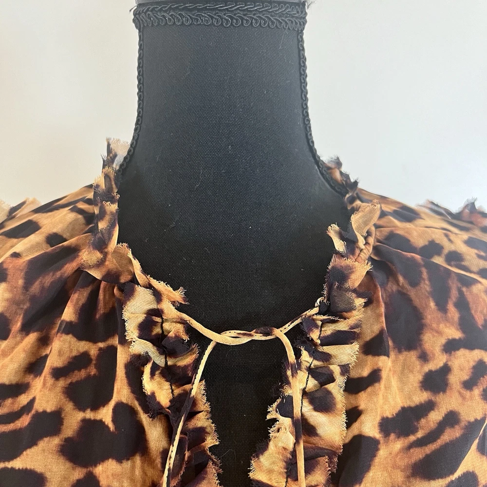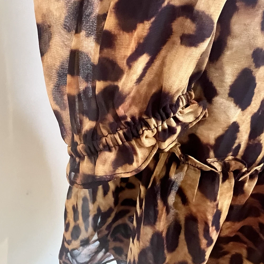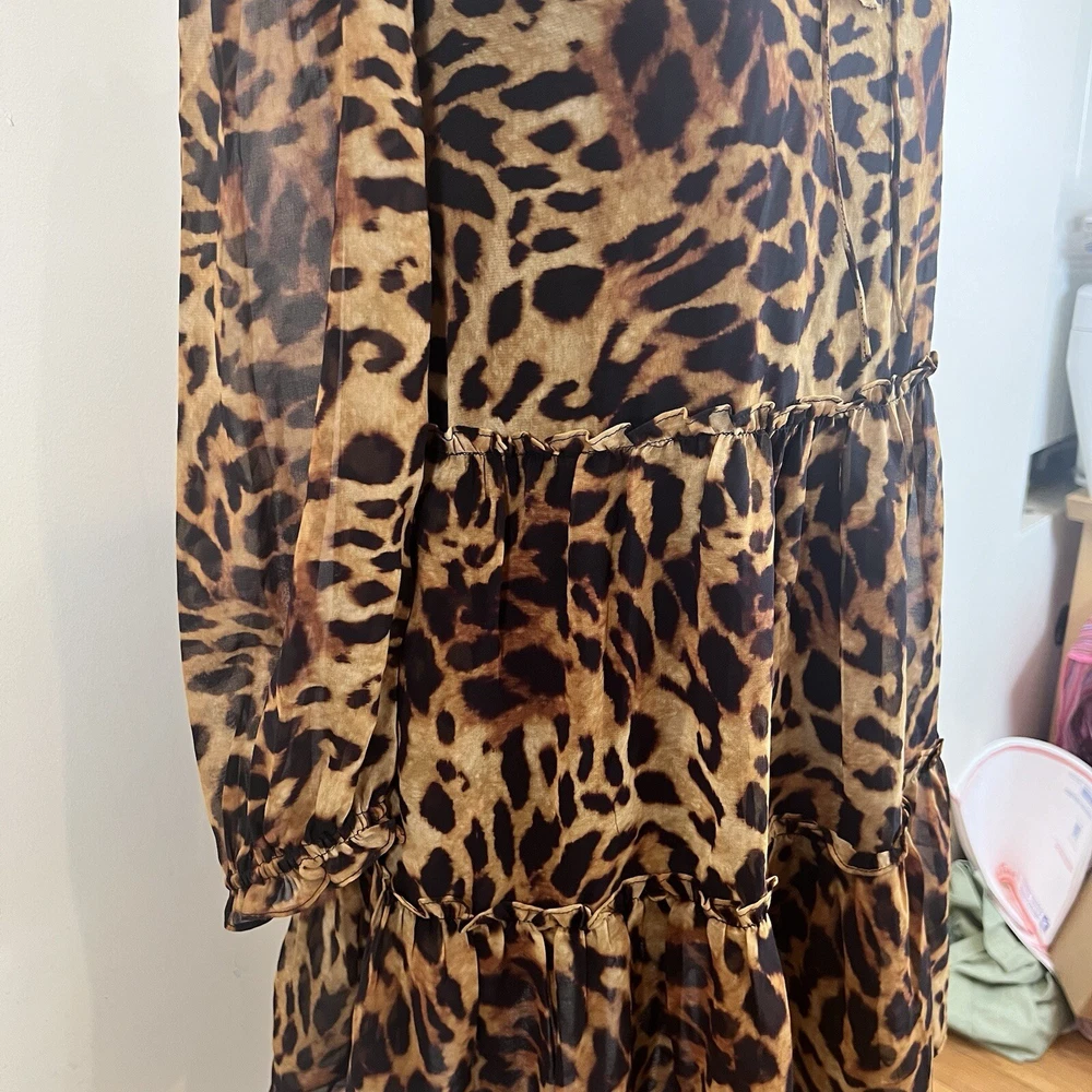 Generation Love Rumi Mini XS Brown Leopard Print separate Black Slip Lining Bust: 17" flat measure pit to pit Length: 34" shoulder to hem This Generation Love Rumi Mini Dress in XS size is perfect addition to your wardrobe. The dress features a beautiful brown leopard print and is made of high-quality polyester material with a chiffon fabric type. The 3/4 sleeves and V-neckline with string tie add a touch of elegance to the dress, while the pullover closure makes it easy to wear. The dress is lined and should be hand washed only. See photos. Ask questions. Thank you for supporting my small, woman owned business.