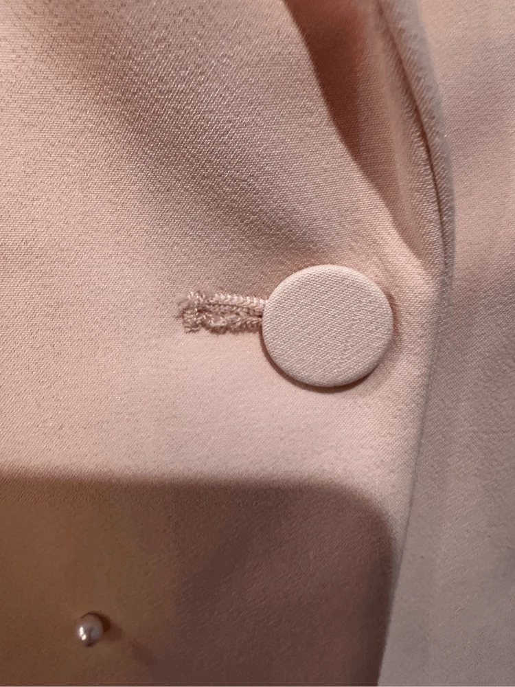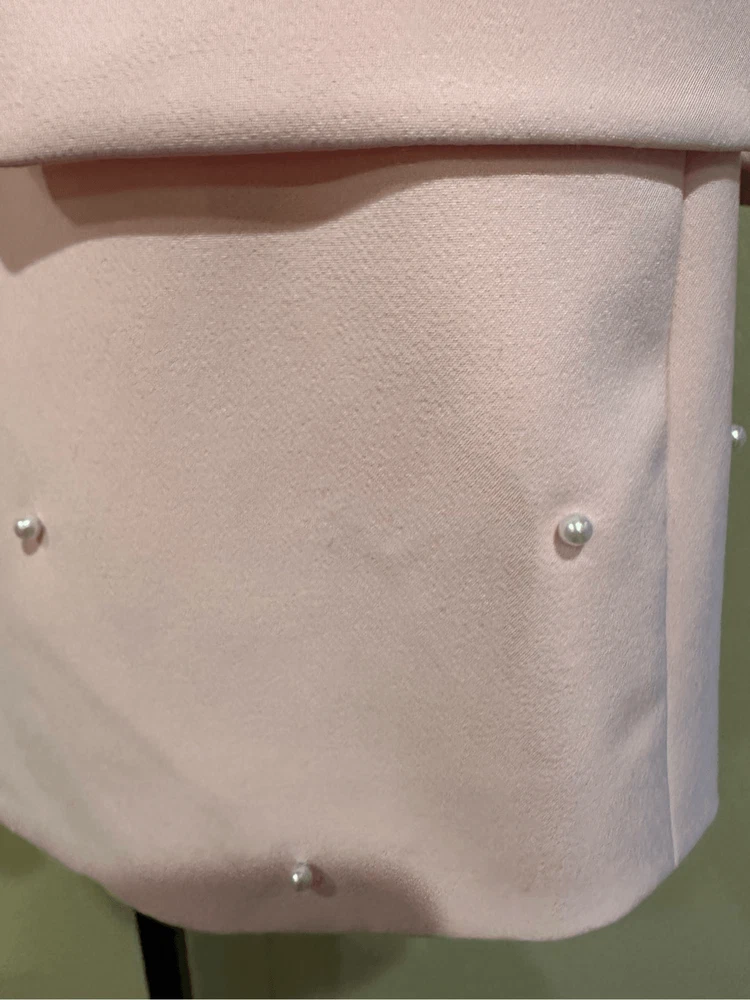 Generation Love Nadia Faux Pearl-Embellished Blazer in Pink Size XS Flaws: Dust spots, thread pulls, pillings and stains are noted. Professional dry cleaning service should be able to remove all dust spots and stains. Please view all images prior to making a purchase This is a sample piece, so it does not have a material or care tag. Cut in a single-breasted silhouette, Generation Love's Nadia blazer is decorated with shirred three-quarter-length sleeves and beaded faux pearl detailing. Notch lapels Three-quarter-length sleeves, button cuffs Chest welt pocket Waist flap pockets Round front hem Back vent Faux pearl trim Single-breasted button-front closure 95% polyester/5% spandex Lining: 95% polyester/5% spandex Dry clean Approximate measurements laying flat: PTP: 17” Length front: 26” Arm: 20” Slight color variation due to lighting