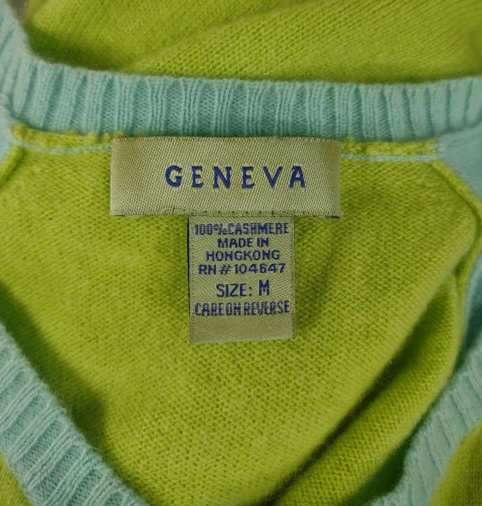 Size: M Season: Fall, Spring, Summer, Winter Type: Sweater gtin13: Does Not Apply Fabric Type: Knit Vintage: No Seller Notes: “Excellent pre-owned condition. Please read full description.” UPC: Does Not Apply Fit: Regular Size Type: Regular Graphic Print: No Brand: Geneva Department: Women Neckline: Round Neck Color: Green, Blue Garment Care: Dry Clean Only Style: Cardigan Sweater Length: Hips Material: 100% Cashmere Sleeve Length: Long Sleeve Pattern: Solid Occasion: Casual Features: Lightweight