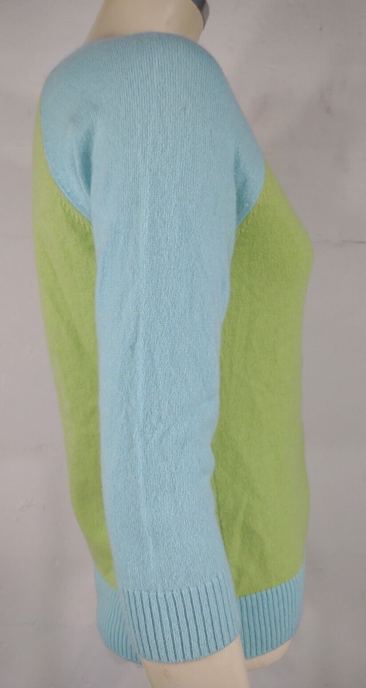 ladies button front cardigan sweater Geneva brand green, blue size M (Please refer to measurements below!) 100% Cashmere Excellent pre-owned condition! No flaws to speak of. Measurements lying flat: Bust (pit to pit): 17.5 inches. Length (from shoulder to bottom hem): 22 inches. Policies and Disclosures: RETURNS: Returns are accepted within 30 days of purchase. Buyer is responsible for return shipping. All items from this store come with an identification tag; Item(s) must be returned in original condition with the I.D. tag intact for a refund. SHIPPING: I do combine shipping when multiple items are purchased. In order to provide you with the least expensive price, you will need to send me a message requesting an invoice with combined shipping. CLOTHING: My goal is to sell only the finest quality new and gently used clothing items in my stores, and I strive for 100% satisfaction with every order. While my home is smoke-free, other pre-owned items from different sources cannot be guaranteed as smoke-free or pet-free. It is assumed that you as the buyer will be cleaning the garment once it arrives to you, so unless there is an obvious stain or odor, the clothing has not been laundered. I felt it was best left up to the buyer so no issues would surface regarding detergent allergies, shrinking, etc. Please note that any must or smoke odors can almost always be completely removed by adding 1 cup of distilled white vinegar to your normal wash cycle. I provide measurements on all my clothing items so that you, as the buyer, can make an informed decision about your purchase. Please use that information to compare it with a garment that fits you well to determine if the item will work for you. Seller will not assume responsibility for return postage on items that do not fit. COMMENTS: Please note that every item I sell is described to the best of my knowledge and ability, however, I am a human being, so occasionally I do make mistakes. Colors may vary slightly between screens and monitors. Sizing can vary from brand to brand. If you have any questions about the item(s), free to ask and I will do my best to get back with you in a timely manner. If you have any issues with your purchase, please do not hesitate to contact me prior to leaving negative feedback so we can try to resolve the issue. I am flexible and easy to work with. If you see something you are interested in, feel free to make a reasonable offer! (On a side note: Lowball offers are insulting and will be declined.) Take a moment to browse my other items for sale. I offer a large variety of items, with new items daily, so there’s something for everyone! Thanks so much for taking the time to look and have a wonderful day!