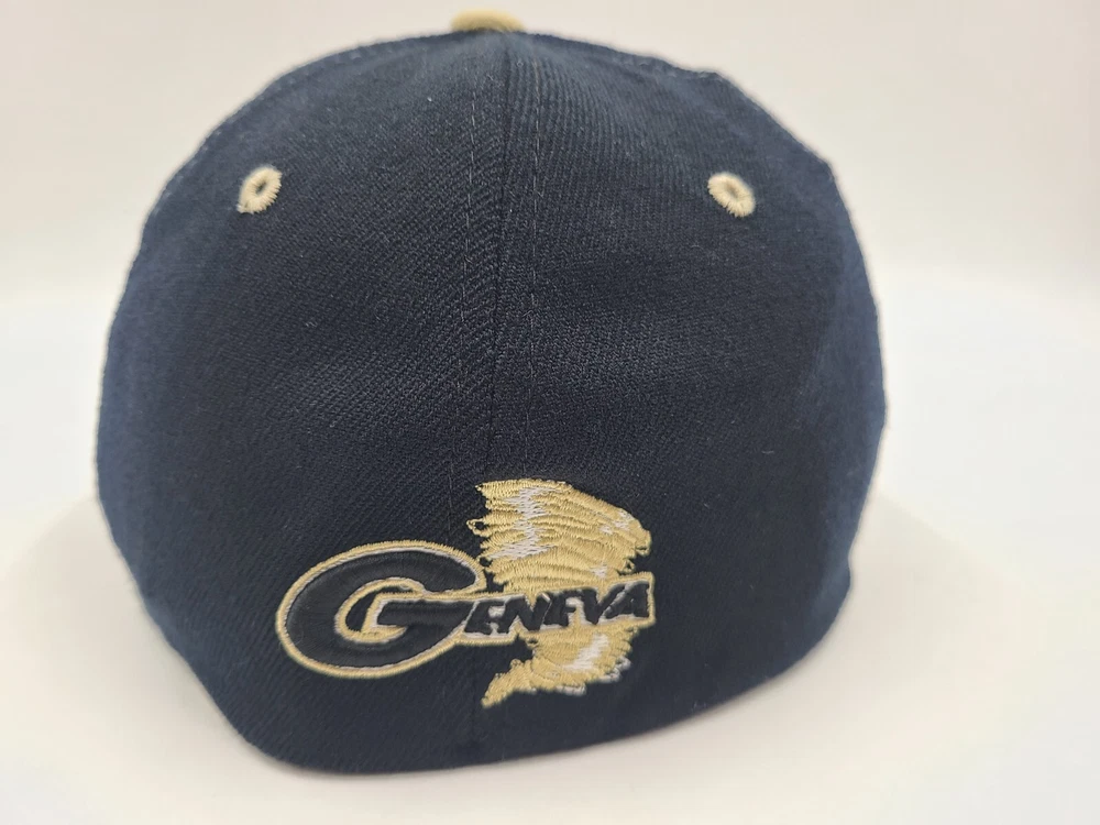 Has some stains on the front as seen in photos. Geneva College Golden Tornadoes Zephyr Flex Fitted M-L Hat Cap Men Women NCAA. EACH ADDITIONAL HAT PURCHASED IS ONLY $1 ADDED SHIPPING!