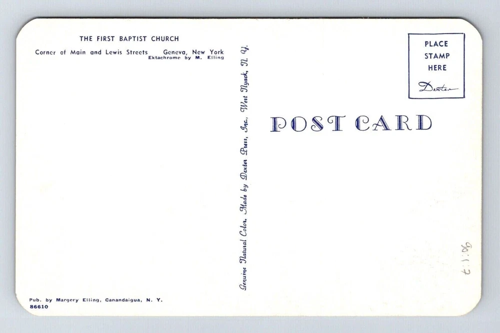 Geneva New York First Baptist Church Historic Landmark Chrome UNP Postcard You will receive the exact postcard in the picture. We use a high quality scanner to capture pictures of the front and back for every postcard we have listed. Postcards will be in the condition as shown in the pictures. We ship Mon-Fri. We also offer combined shipping discounts or free shipping. If we have shipping on your listing you can buy as many additional postcards as you want and they will ship for free after the fist postage is paid. If you select first class shipping and pay the extra your postcard will be shipping as a package with extra protection. If you choose free shipping or $1.50 shipping your postcard will be shipped in a standard envelope with soft plastic sleeve and do not bend written on the envelope. Orders of 15 or more cards or with single cards over $20 in them will automatically be upgraded to first class and at least a photo mailer. If you have any questions feel free to ask. We are willing to consider reasonable offers and we offer discounts on orders of more than one card. Thank You _gsrx_vers_1436 (GS 9.0.5 (1436)) _gsrx_vers_1503 (GS 9.2.1 (1503)) _gsrx_vers_1608 (GS 9.5 (1608)) _gsrx_vers_1653 (GS 9.7.5 (1653))
