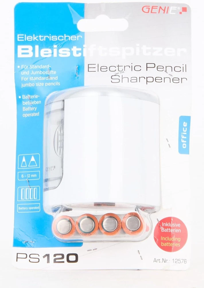 Item Length: 75mm Style: Single Item Width: 75mm MPN: ‎PS 120 A Item Weight: 180g Type: Pencil Sharpeners Brand: ‎GO Europe GmbH Dimensions: ‎7.5 x 7.5 x 7.5 cm; 180 g Title: Genie PS 120 Electric Pencil Sharpener, Suitable for All Pencils, Release Date: 09/19/2018 Features: Transparent gtin13: 4015468125765 UPC: 4015468125765 Color: ‎White Number of Items: ‎1 Item Height: 75mm Material: ‎Holz