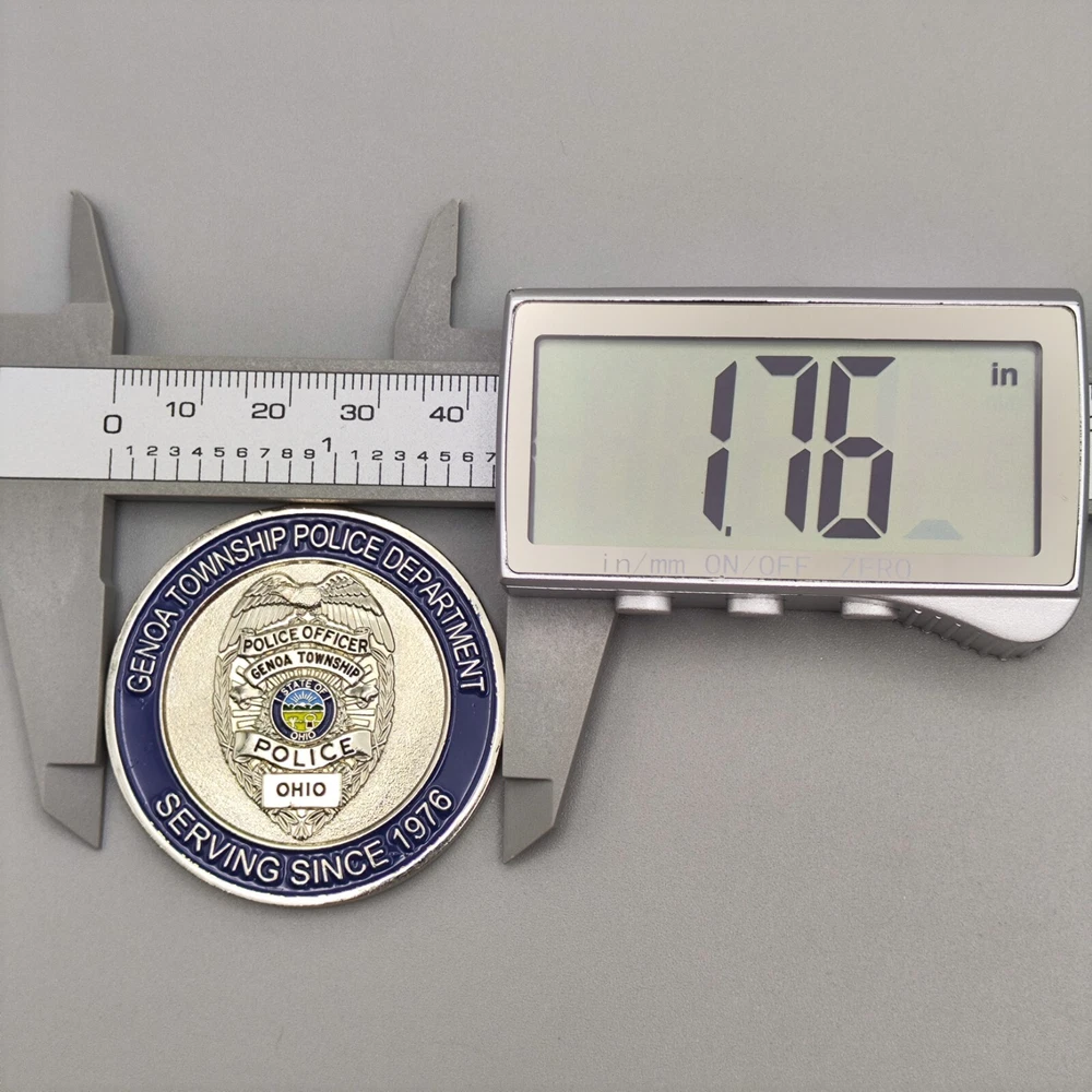 TITLE-- Genoa Township OHIO Police Department Challenge Coin SIZE-- Measures approx. 1.76 inches Used coins have imperfections, please see pictures SHIPPING -- Ships within 5 days of receiving payment. Your purchase will be carefully packaged and you can always check tracking information on eBay Purchase two and more and get a discount on shipping SERVICES -- If you have any questions, you can contact us at any time, we will reply you as soon as possible to solve your problem If you are not satisfied with your purchase for any reason, please contact us before leaving neutral or negative feedback, we will solve the problem for you properly