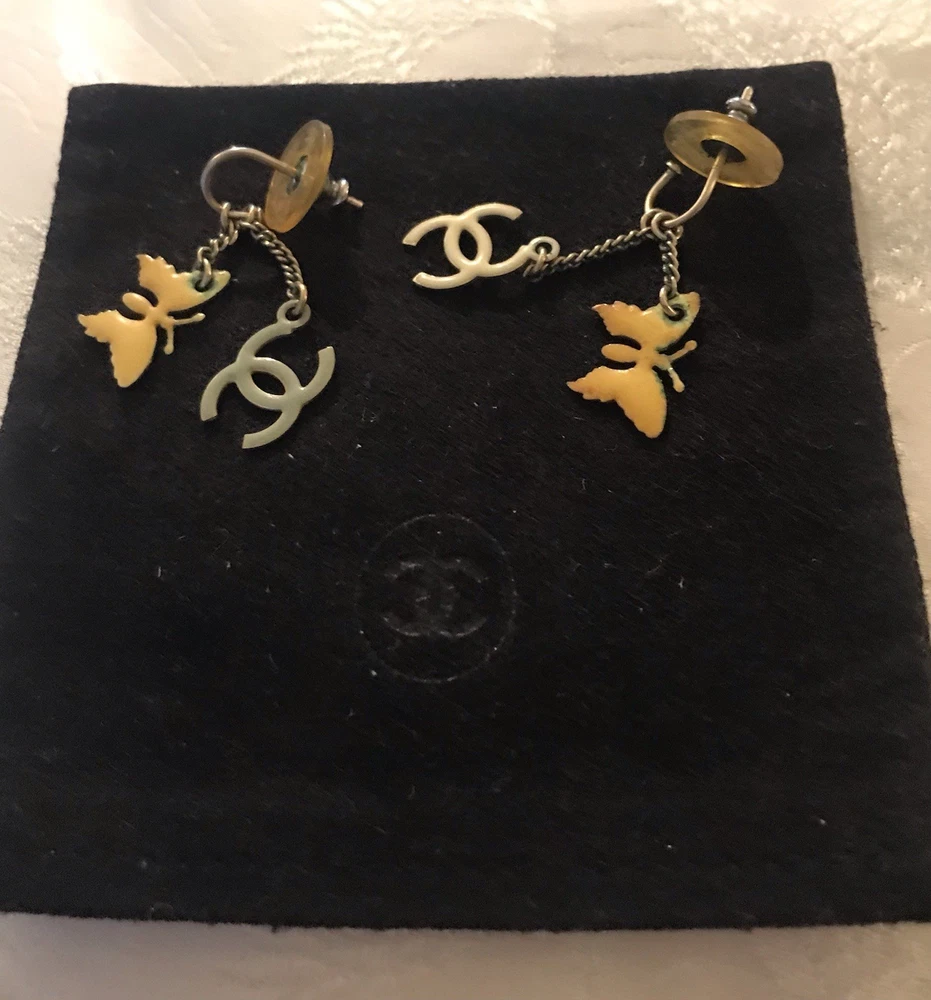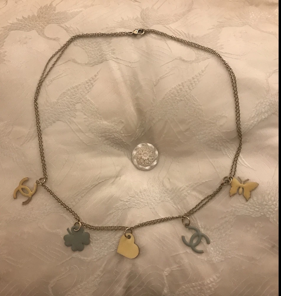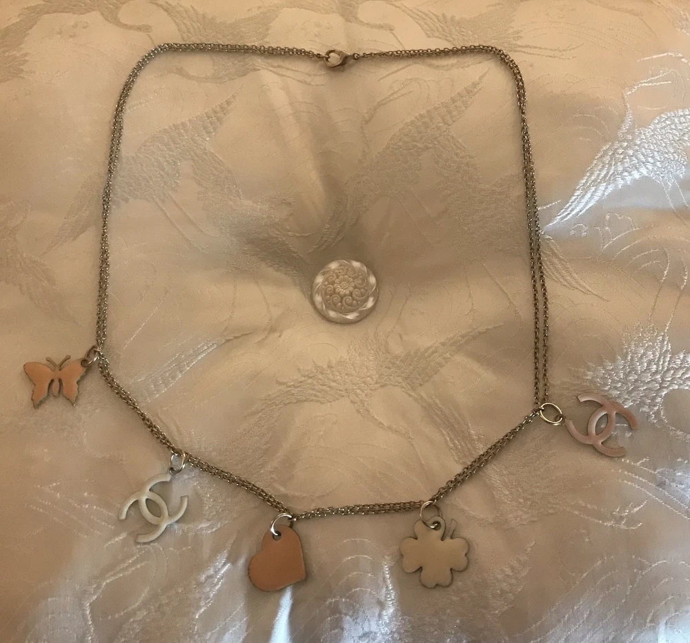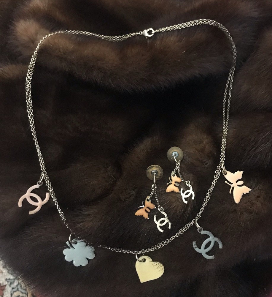 Genuine Authentic CHANEL Necklace & Earrings Set Butterfly, Heart & CC Charms