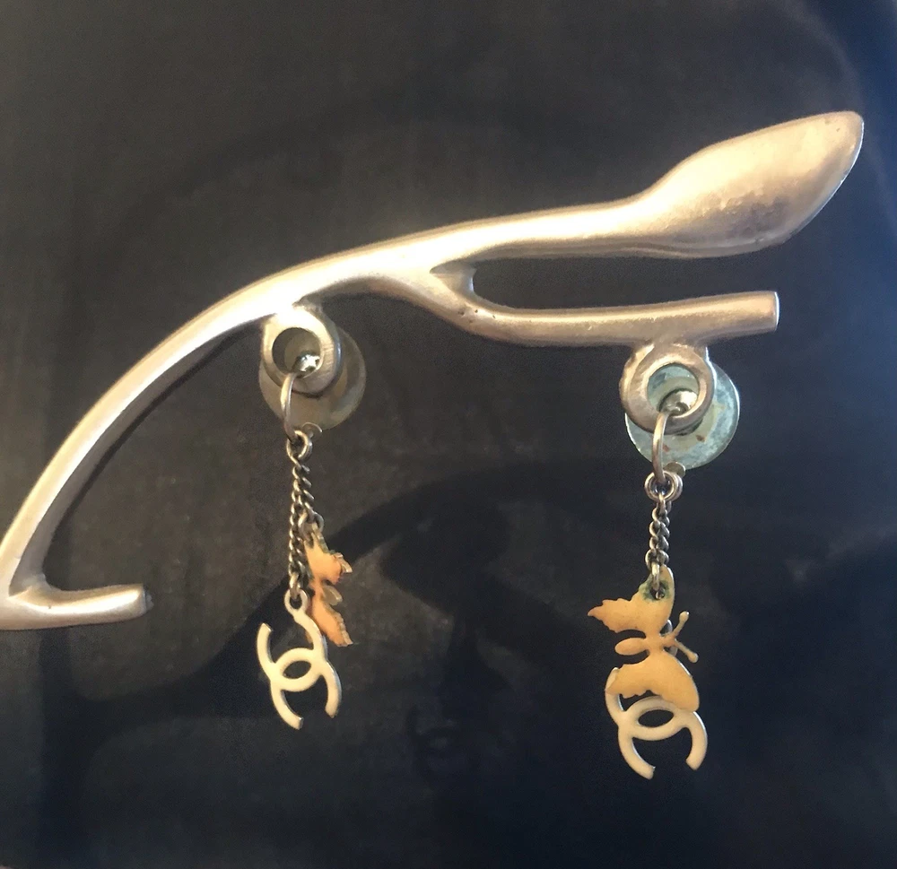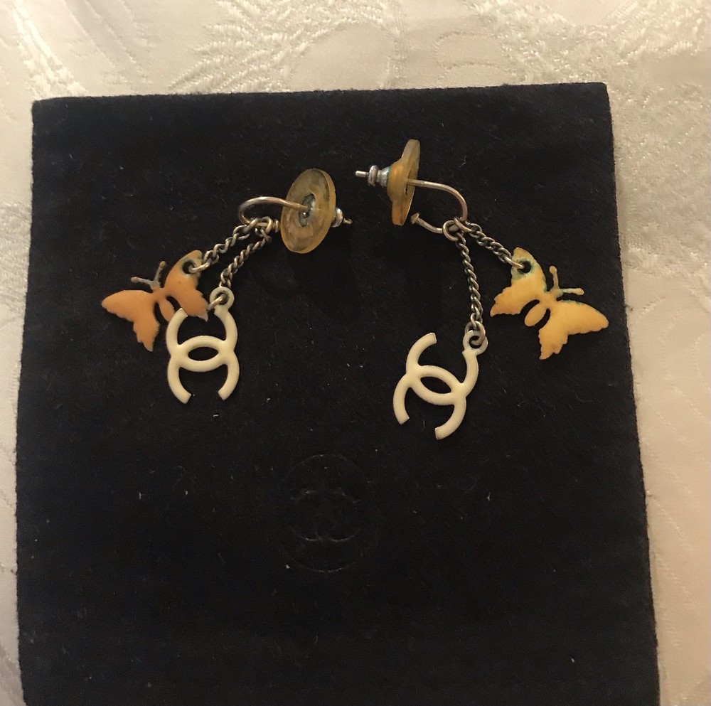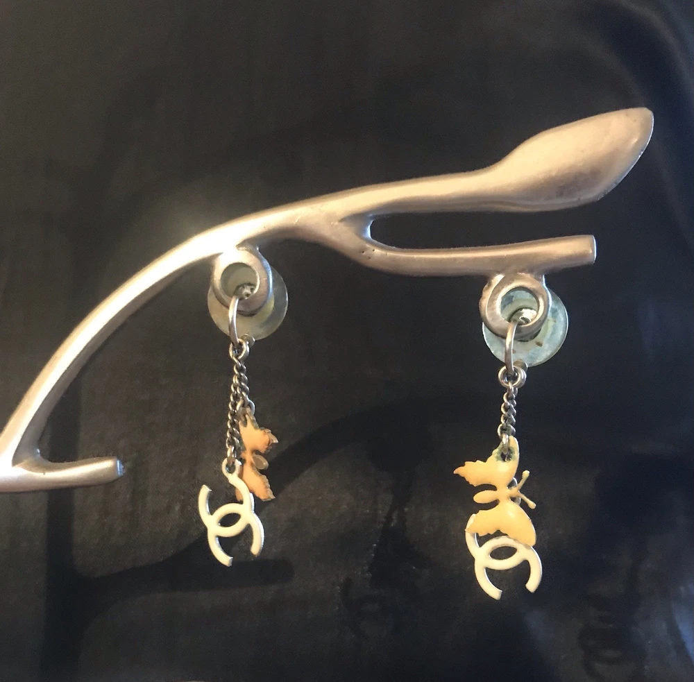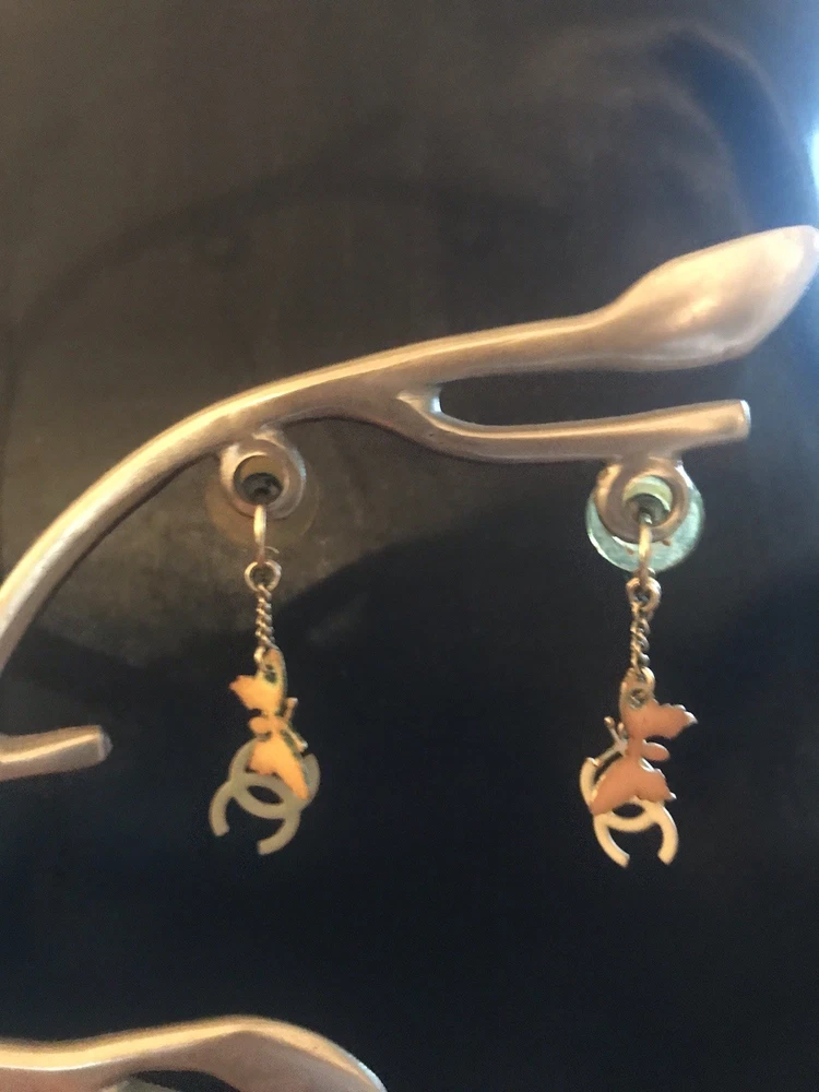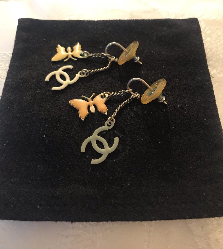 Genuine Authentic CHANEL Necklace & Earrings Set Butterfly, Heart & CC Charms
