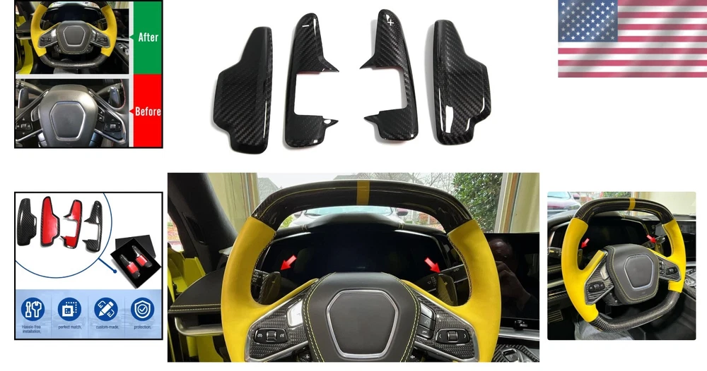Genuine Carbon Fiber Paddle Shifters for Corvette C8 2020-2023 - Black Add-on ‹ › ‹ › ‹ › ‹ › ‹ › ‹ › ‹ › ‹ › Genuine Carbon Fiber Paddle Shifters for Corvette C8 (2020-2023) - Black Add-on Elevate Your Driving Experience If you seek to enhance the aesthetics and performance of your Chevrolet Corvette C8, look no further. Our Genuine Carbon Fiber Paddle Shifters are not just an upgrade, they are a statement of luxury and passion for driving. Features: Handcrafted Excellence: Utilizing prepreg (dry) carbon fiber and advanced production technologies, each piece is finished with a premium clear coat that protects and amplifies the stunning carbon fiber woven patterns. Superior Functionality: Designed for seamless integration with your original paddle shifters, our paddles enhance your driving dynamics by providing quicker and more precise shifts. Effortless Installation: Our paddle shifters come with tape on the backside for a convenient add-on installation. Upgrade your driving experience without the hassle! Precision Fit: Direct factory paddle shifter add-on type guarantees an impeccable fit. Specifically crafted for Chevrolet Corvette C8 models from 2020 to 2023. Gift-Ready Packaging: Each package includes 2 pieces of paddle shifters, making it the perfect seasonal gift for car enthusiasts and lovers of luxury. Why Choose Our Paddle Shifters? Transform your Corvette C8 into a masterpiece of automotive refinement with our carbon fiber paddle shifters. Not only will they enhance the sporty aesthetic of your interior, but they also offer a significant improvement in the operability and convenience of driving. Experience the thrill of driving like never before! Note: This product is an add-on style, designed to cover your original paddle shifters without extending them. Elevate your driving experience today! Shipping Free & Fast Shipping - We offer free shipping to most of the USA with a normal delivery time of 3-7 days. However, due to the current situation, additional delivery time (up to 3 weeks) may be required for some items. Alternative Carriers - We may use alternative carriers (e.g. USPS, FedEx, UPS, etc.) to ensure your package arrives safely and on time. Due to the use of multiple carriers, we are unable to provide a tracking number automatically. Handling Time - Orders are processed and shipped within 1-2 business days of receiving cleared payment. Shipping Restrictions - Shipping to Alaska, Hawaii, Puerto Rico, Guam, and other US territories may incur shipping charges or delivery restrictions. Please contact us before ordering, or your order can be refunded/cancelled. State Restrictions - There may be restrictions based on your state of purchase. For example, certain items may not be shipped to California due to state regulations. Contact for Tracking Updates - If you require tracking updates or have any concerns about the delivery of your order, please feel free to contact us, and we will be happy to assist you. Return Please see our eBay Return Policy. Thank you. Payment We accept all major credit cards, PayPal, and Apple Pay for your convenience. Your payment information is secure and encrypted to ensure a safe and seamless transaction. Please complete your payment within 3 days of purchase to avoid any delays in shipping. Feedback Your feedback is extremely important to us. We strive to provide the best products and customer service possible. If you are satisfied with your purchase, please take a moment to leave us a positive review. If you have any concerns or issues with your order, please contact us before leaving negative feedback. We are committed to resolving any problems and ensuring your satisfaction. Contact Us If you have any questions or concerns, please feel free to reach out to our customer support team. You can contact us through the eBay messaging system. We are available Monday to Friday, 9:00 am to 5:00 pm EST, and we will do our best to respond to your inquiry within 24 hours. Thank you for supporting our small family business! UPC: Not Set Items Included: Shift Paddle,Steering Wheel Extensions Material: Carbon Fiber Features: Quick Release,Improves Operability,Convenient Installation Brand: Unbranded Type: Shift Paddle Manufacturer Part Number: Not Set OE/OEM Part Number: Not Set Color: Black Item Diameter: 8.6 in Country/Region of Manufacture: Not Set Manufacturer Warranty: Not Set Interchange Part Number: Not Set Superseded Part Number: Not Set Vintage Part: Not Set Universal Fitment: Not Set Performance Part: Not Set
