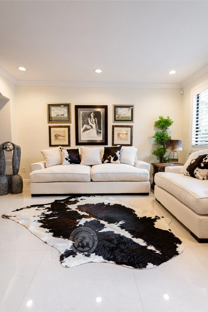 Real Colombian Cowhide Rug - Genuine Cowhide Rug • Timeless beauty with top-quality craftsmanship • 100% authentic cowhide from Colombia Fast Shipping & Hassle-Free Returns • Direct shipping from our USA warehouse • 30-day hassle-free returns Carefully Handpicked for Quality • Meticulously selected by experienced teams in South America • Actual rug resembles the representative samples Authentic Charm & Variation • Features natural marks, scars, or branding • Minor variations in size, color, or pattern Cleaning Instructions for Longevity Regular Vacuuming: Incorporate your cowhide rug into your routine vacuuming to prevent dirt buildup. Vacuum in the direction of the hair to prevent any damage. Occasional Shaking: Periodically shake your rug outside to eliminate excess dirt or debris that might have accumulated. This helps maintain its pristine condition. Brushing: Use a brush with hard bristles to gently brush your cowhide rug in the direction of the hair. This will help keep it looking its best. Treat your cowhide rug as a valuable investment, and it will reward you with years of unparalleled beauty and durability.