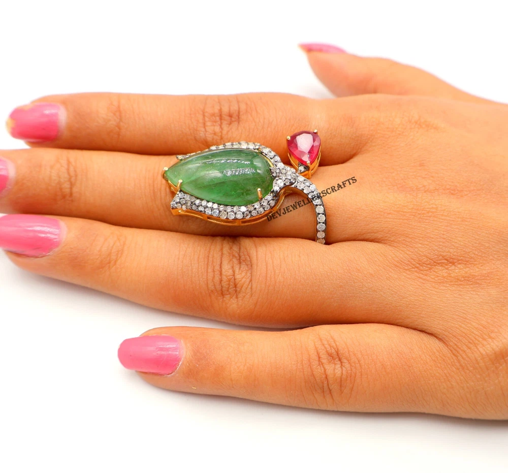 Created with Eselt - eBay Listing Templates Created with Eselt - eBay Listing Templates Our Store Seller Profile Feedback About us Contact Created with Eselt - eBay Listing Templates Genuine Emerald & Ruby Gemstone 925 Sterling Silver Pave Diamond Ring Jewelry. About Item ! Genuine Emerald & Ruby Gemstone 925 Sterling Silver Pave Diamond Ring Jewelry. This striking and luxurious ring combines the vibrant beauty of genuine emerald and ruby gemstones with the sparkling elegance of pave diamonds . Expertly crafted from high-quality 925 sterling silver , the band provides a sleek and sturdy base, ensuring lasting beauty and wearability. The ring’s design features two captivating gemstones: a rich emerald , known for its deep green hue and timeless allure, paired with a fiery ruby , symbolizing passion and vitality. These two precious stones are meticulously set side by side, creating a perfect balance of color and energy. The pave diamonds surround the gemstones, adding an extra layer of sophistication and brilliance to the design. The diamonds are expertly placed to maximize their sparkle, framing the emerald and ruby in a halo of shimmering light. The combination of these vibrant gemstones and the twinkling diamonds offers a luxurious, statement-making effect that makes this ring perfect for special occasions or as a standout everyday accessory. With its bold design and impeccable craftsmanship, this Emerald & Ruby Gemstone Pave Diamond Ring is the perfect choice for those seeking a piece that exudes elegance, color, and radiance. Whether as an engagement ring, anniversary gift, or a personal indulgence, it’s sure to captivate and make a lasting impression. Features: Material: 925 Sterling Silver Main Stones: Genuine Emerald & Ruby Gemstones Accent Stones: Pave Diamonds Finish: High-polish for a sleek, lustrous appearance Design Style: Elegant, bold, with vintage-inspired detailing Band Width: Varies (typically around 2-4mm) Ring Size: Customizable (available in a range of sizes) Perfect for: Jewelry lovers who appreciate vibrant colored gemstones Special occasions like engagements, anniversaries, or birthdays Adding a touch of luxury and color to any outfit Those who seek a statement piece with a blend of classic and contemporary design RETURN POLICY : Your satisfaction our priority. returns are available within 30 days of the item's arrival. 100% money back or exchange guarantee on. Shipping : we offer worldwide shipping item will be shipped within 2 day after payment is cleared. the delivery time usually takes 9 To 12 days & depending which country & location. Gemstone Shape : Pear Ring Size : All Size Available Main Stone Color : Green Made in India Created with Eselt - eBay Listing Templates Created with Eselt - eBay Listing Templates Links Our Store Seller Profile Feedback About us Contact More items Are you looking for something similar? See our other items! Show more items Contact Give us a call Send us a message