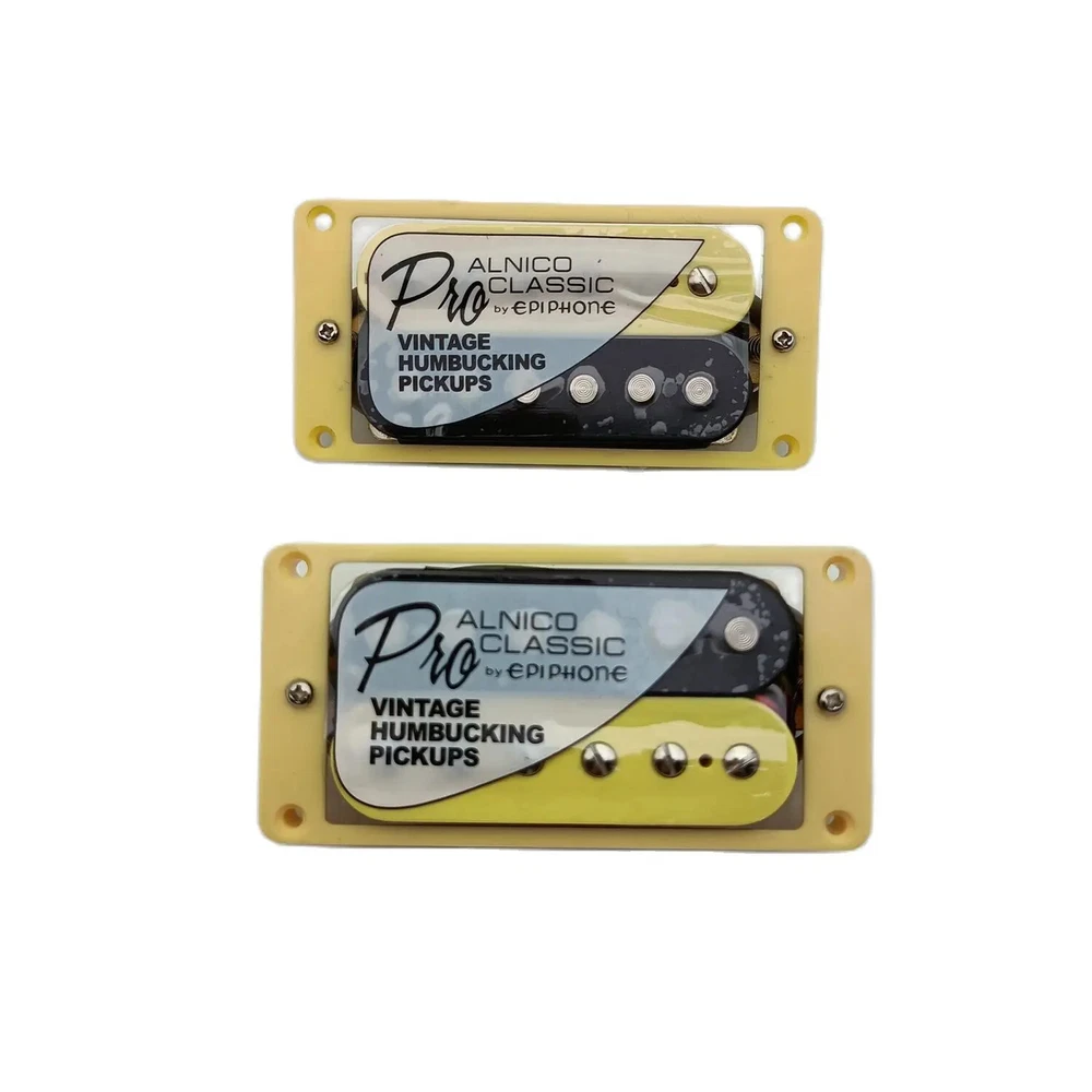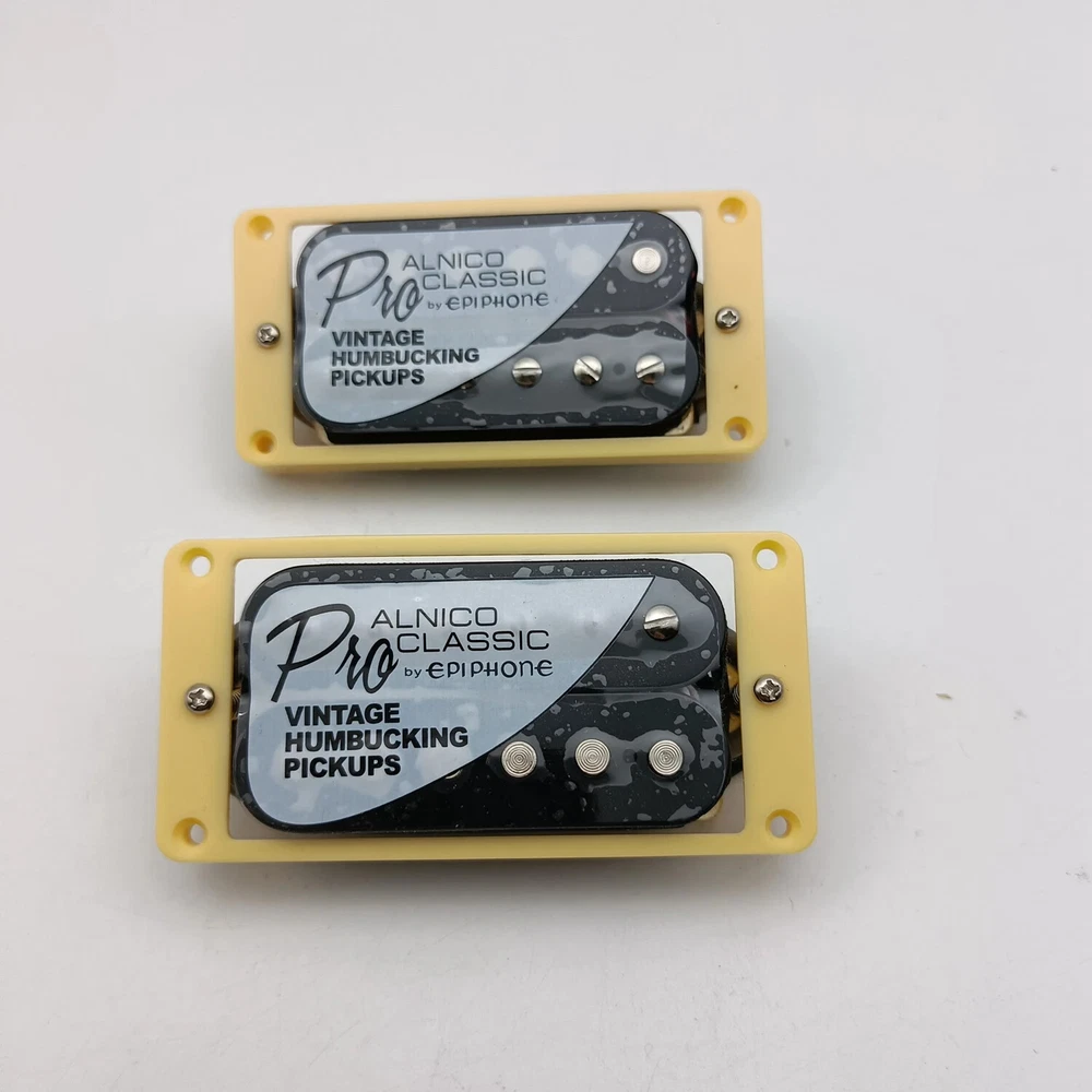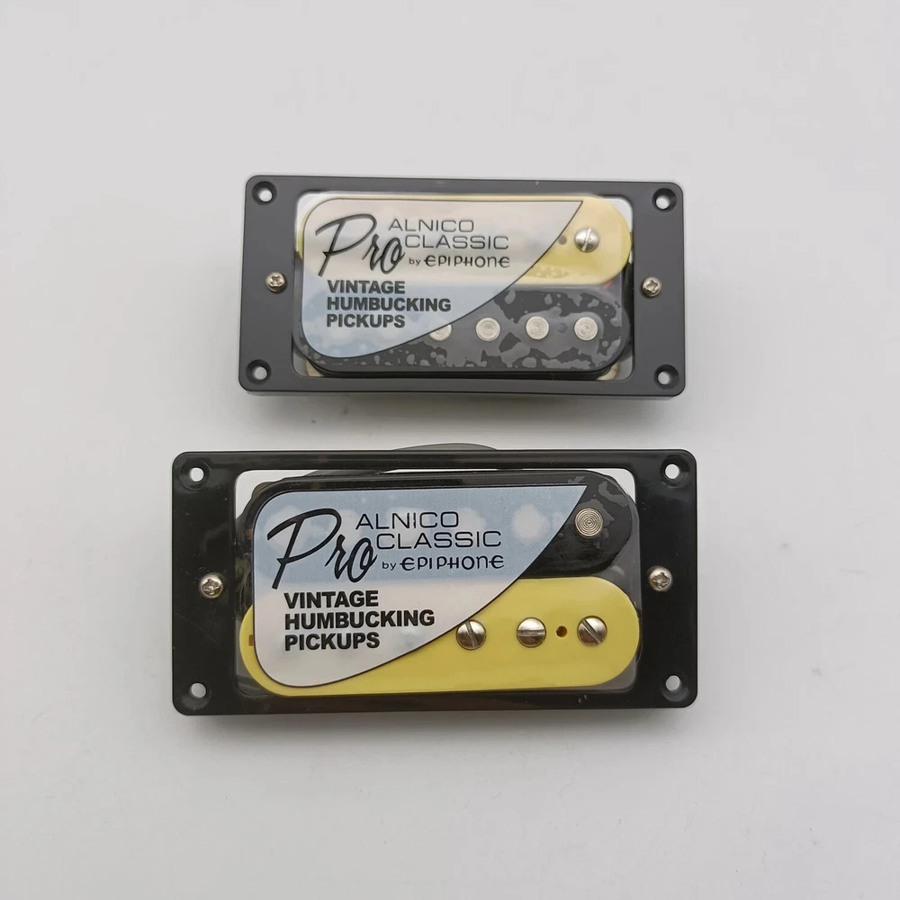 Item Model :Authentic Epiphone Alnico Classic Bucker PRO Vintage Humbucker Pickup Zebra 4C With Wiring Harness Magnet:I mported copper wire Alnico V Scope of use :Suitable for most electric guitars DC Resistance (approx.) : Neck 7 K ; Bridge:13.58K Hole distance : Neck 50mm ; Bridge: 52mm (K resistance is for reference only, which will change as the temperature changes.) Weight :350g / set Cable: 4C Braided Shield for humbucker pickup; 2C for single coil pickups Accessories: Springs+ Screws