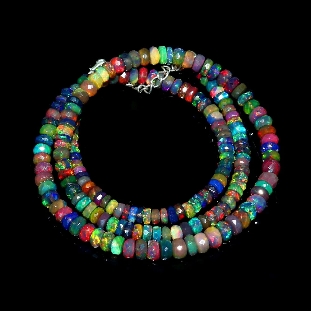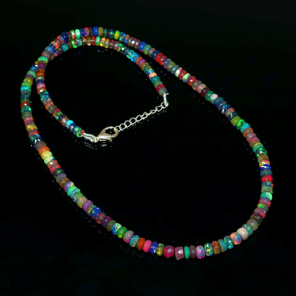 Genuine Ethiopian Opal Beads Gemstone Necklace Valentine Day Gift Jewelry 1015