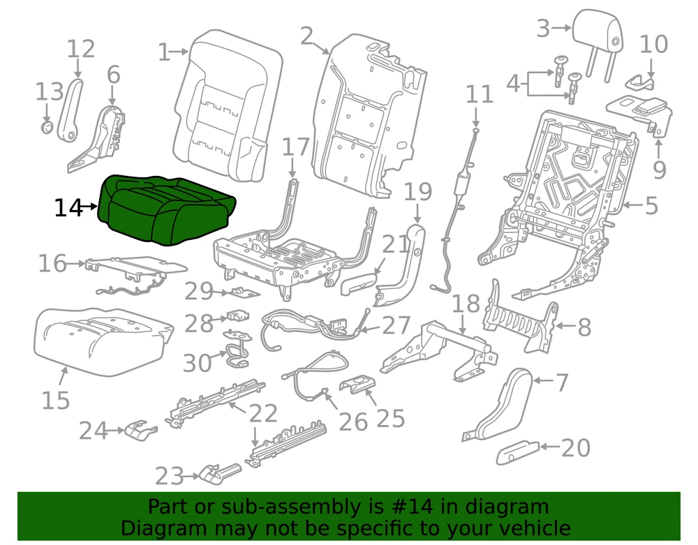 World Parts Direct Genuine GM Ash Gray Rear Driver Side Seat Cushion Cover 84411544 Part can be found as # 14 in the diagram above Product Description Driver side-captain seat, leather, gray. Designed for an exact fit to prevent movement on the cushions Available in multiple colors to match the vehicle's interior trim package This GM Genuine Part is designed, engineered, and tested to rigorous standards and is backed by General Motors Collision parts are designed to help promote proper and safe repair Specifications Brand GM Manufacturer Part Number 84411544 SKU 84411544 Product Genuine GM Ash Gray Rear Driver Side Seat Cushion Cover 84411544 ONLY PART REFERENCE #14 ON THE DIAGRAM IS INCLUDED About Us WorldPartsDirect is a small, Texas based business located in the Dallas metroplex. There are about twenty of us that work tirelessly to get you the genuine, OEM parts you need at unbeatable prices. We pride ourselves in top quality customer service and our commitment to be the business we would want to shop with. We have one of the largest inventory networks in the country along with some of the most aggressive discounts. We love cars, and we love what we do! We hope you will love shopping with us , and we always welcome feedback on how we can make your shopping experience even better. Terms and Conditions Compatibility Guarantee (optional free service): Applies when you include your VIN during or before checkout. Simply click "Message to Seller" during checkout and include your VIN with any relevant details (ex: driver/ passenger side). Our fitment experts will confirm compatibility before shipping. If we determine that you purchased an incompatible part, we will correct your order if possible. If we cannot correct your order, we will notify you of the issue (ex: discontinued item) and give you the option to cancel. Part Authenticity and Warranty Guarantee: When you order from us, we guarantee that you will receive a genuine, OEM part. We do not stock anything aftermarket! Our parts are warrantied nationwide for 1 year at every Mopar (Chrysler/Dodge/Jeep/Ram) or General Motors (Chevrolet/Buick/GM/GMC) dealer in the country, depending on the brand of part you ordered. We are able to provide documentation that proves the validity of your purchase from our licensed dealership at anytime upon request. This documentation can be used to redeem this warranty if needed at the dealership of your choice and at no cost to you. Return Policy All of our products can be returned within 30 days. Please open a request for any of these reasons: Doesn't Fit Changed My Mind Found a Better Price Just Didn't Like it Ordered by Mistake The reason you pick has no impact on your refund amount, but it has a big impact on us as a seller. Choosing other reasons may delay the refund per an internal investigation and potential eBay appeal. If a part fails at anytime during the 1 year warranty period, any licensed new car dealership in the country that carries your brand of vehicle will replace the part for free. Simply request our dealer invoice for the part and provide it to your preferred dealer along with the defective part. Home • Newsletter Signup • Contact Us Copyright © 2025 World Parts Direct , All rights reserved. Solution by RevolutionParts, Inc. :: Design by OCDesignsOnline