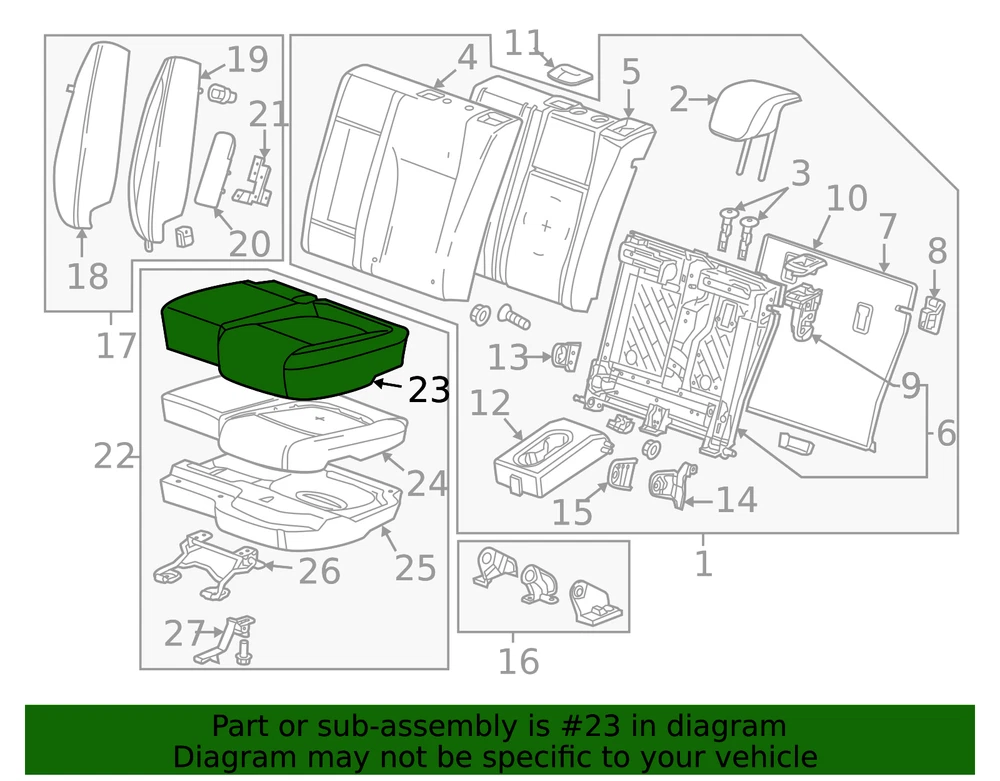 aaronchevrolet Genuine GM Brownstone Rear Driver Side Seat Cushion Cover 95248081 Part can be found as # 23 in the diagram above Product Description 60% seat, premium cloth, brownstone. Designed for an exact fit to prevent movement on the cushions Available in multiple colors to match the vehicle's interior trim package This GM Genuine Part is designed, engineered, and tested to rigorous standards and is backed by General Motors Collision parts are designed to help promote proper and safe repair Specifications Brand GM Manufacturer Part Number 95248081 SKU 95248081 Product Genuine GM Brownstone Rear Driver Side Seat Cushion Cover 95248081 ONLY PART REFERENCE #23 ON THE DIAGRAM IS INCLUDED WARNING : May cause cancer and reproductive harm. See www.P65Warnings.ca.gov for more info. Terms and Conditions Thank you for shopping with us. Please find our policies below. If you have any other questions, please don't hesitate to contact us. Shipping Terms If you are located in Alaska, Hawaii or Puerto Rico Please contact us via eBay email to discuss shipping cost In stock orders ship within 24 hours. Weekend orders will be processed the next business day. If a part is not in stock and must be ordered from the manufacturer, it usually takes 2-3 days to arrive to us and will be promptly shipped to you. Most of the orders are shipped complete within 2-3 business days. A few of the parts ordered from the manufacturer may take up to 5-6 business days to arrive and will shipped to you immediately. Depending upon location, ground shipments usually take 2-7 days. Your order may be shipped Overnight for an additional cost. Oversized shipments will be additional; you will be contacted prior to shipping for approval. We cannot guarantee transit times for ground and oversize orders. Shipping Carrier substitutions may be made at our determination in an attempt to reduce shipping cost to the customer. We do not ship internationally. In the unlikely event that a part has been placed on backorder or discontinued, we will do our best to try and find one for you as quickly as possible. We do not ship COD orders. Return Policy Contact us to arrange for any returns. A copy of the invoice will need to be included with the return. Parts must be resaleable and in the original packaging. We cannot take back used parts. We cannot take back installed or tried parts. Electrical parts are not returnable. We do reserve the right to refuse and return any parts we find have been installed, are used or do not meet the above criteria. Return request need to be within 30 days of receipt. Cancellation Policy An order or a portion of an order may be cancelled up until the time it is shipped and no longer in our possession. Home • Newsletter Signup • Contact Us Copyright © 2025 aaronchevrolet , All rights reserved. Solution by RevolutionParts, Inc. :: Design by OCDesignsOnline