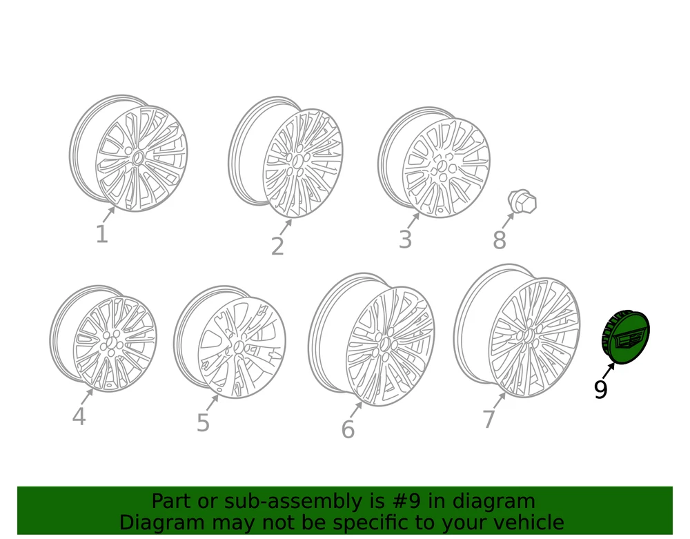 aaronchevrolet Genuine GM Button Style Center Cap in Sterling Silver with Crest Logo 22953467 Part can be found as # 9 in the diagram above Product Description Finish off your Cadillac wheels in style with these elegant Center Caps. Colored Wreath and Crest logo on silver background. GM OEM. Coupe, with v, silver. Helps protect your vehicle's wheel hub, cv shaft (if equipped), and wheel fasteners from dust and moisture Helps enhance vehicle appearance This GM Genuine Part is designed, engineered, and tested to rigorous standards and is backed by General Motors Specifications Brand GM Manufacturer Part Number 22953467 SKU 22953467 Product Genuine GM Button Style Center Cap in Sterling Silver with Crest Logo 22953467 ONLY PART REFERENCE #9 ON THE DIAGRAM IS INCLUDED WARNING : May cause cancer and reproductive harm. See www.P65Warnings.ca.gov for more info. Terms and Conditions Thank you for shopping with us. Please find our policies below. If you have any other questions, please don't hesitate to contact us. Shipping Terms If you are located in Alaska, Hawaii or Puerto Rico Please contact us via eBay email to discuss shipping cost In stock orders ship within 24 hours. Weekend orders will be processed the next business day. If a part is not in stock and must be ordered from the manufacturer, it usually takes 2-3 days to arrive to us and will be promptly shipped to you. Most of the orders are shipped complete within 2-3 business days. A few of the parts ordered from the manufacturer may take up to 5-6 business days to arrive and will shipped to you immediately. Depending upon location, ground shipments usually take 2-7 days. Your order may be shipped Overnight for an additional cost. Oversized shipments will be additional; you will be contacted prior to shipping for approval. We cannot guarantee transit times for ground and oversize orders. Shipping Carrier substitutions may be made at our determination in an attempt to reduce shipping cost to the customer. We do not ship internationally. In the unlikely event that a part has been placed on backorder or discontinued, we will do our best to try and find one for you as quickly as possible. We do not ship COD orders. Return Policy Contact us to arrange for any returns. A copy of the invoice will need to be included with the return. Parts must be resaleable and in the original packaging. We cannot take back used parts. We cannot take back installed or tried parts. Electrical parts are not returnable. We do reserve the right to refuse and return any parts we find have been installed, are used or do not meet the above criteria. Return request need to be within 30 days of receipt. Cancellation Policy An order or a portion of an order may be cancelled up until the time it is shipped and no longer in our possession. Home • Newsletter Signup • Contact Us Copyright © 2025 aaronchevrolet , All rights reserved. Solution by RevolutionParts, Inc. :: Design by OCDesignsOnline