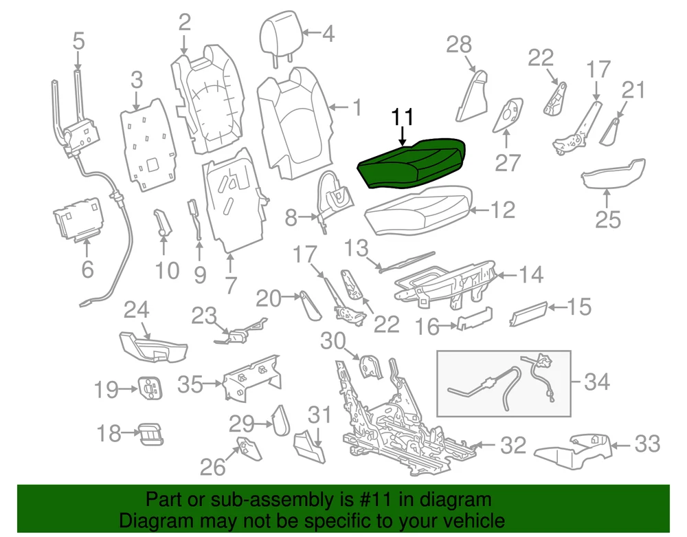 VRAY-GMC Genuine GM Ebony Rear Passenger Side Seat Cushion Cover 22958215 Part can be found as # 11 in the diagram above Product Description Passenger side-bench seat, without leather, ebony. Designed for an exact fit to prevent movement on the cushions Available in multiple colors to match the vehicle's interior trim package This GM Genuine Part is designed, engineered, and tested to rigorous standards and is backed by General Motors Collision parts are designed to help promote proper and safe repair Specifications Brand GM Manufacturer Part Number 22958215 SKU 22958215 Product Genuine GM Ebony Rear Passenger Side Seat Cushion Cover 22958215 ONLY PART REFERENCE #11 ON THE DIAGRAM IS INCLUDED WARNING : May cause cancer and reproductive harm. See www.P65Warnings.ca.gov for more info. Terms and Conditions Thank you for shopping with us. Please find our policies below. If you have any other questions, please don't hesitate to contact us. Shipping Terms In stock orders ship within 24 hours. Weekend orders will be processed the next business day. If a part is not in stock and must be ordered from the manufacturer, it usually takes 2-3 days to arrive to us and will be promptly shipped to you. Most of the orders are shipped complete within 2-3 business days. A few of the parts ordered from the manufacturer may take up to 5-6 business days to arrive and will shipped to you immediately. Depending upon location, ground shipments usually take 2-7 days. Your order may be shipped Overnight for an additional cost. Oversized shipments will be additional; you will be contacted prior to shipping for approval. We cannot guarantee transit times for ground and oversize orders. Shipping Carrier substitutions may be made at our determination in an attempt to reduce shipping cost to the customer. We do not ship internationally. In the unlikely event that a part has been placed on backorder or discontinued, we will do our best to try and find one for you as quickly as possible. We do not ship COD orders. Return Policy Contact us to arrange for any returns. A copy of the invoice will need to be included with the return. Parts must be resaleable and in the original packaging. We cannot take back used parts. We cannot take back installed or tried parts. Electrical parts are not returnable. We do reserve the right to refuse and return any parts we find have been installed, are used or do not meet the above criteria. Return request need to be within 30 days of receipt. Cancellation Policy An order or a portion of an order may be cancelled up until the time it is shipped and no longer in our possession. Home • Newsletter Signup • Contact Us Copyright © 2025 VRAY-GMC , All rights reserved. Solution by RevolutionParts, Inc. :: Design by OCDesignsOnline
