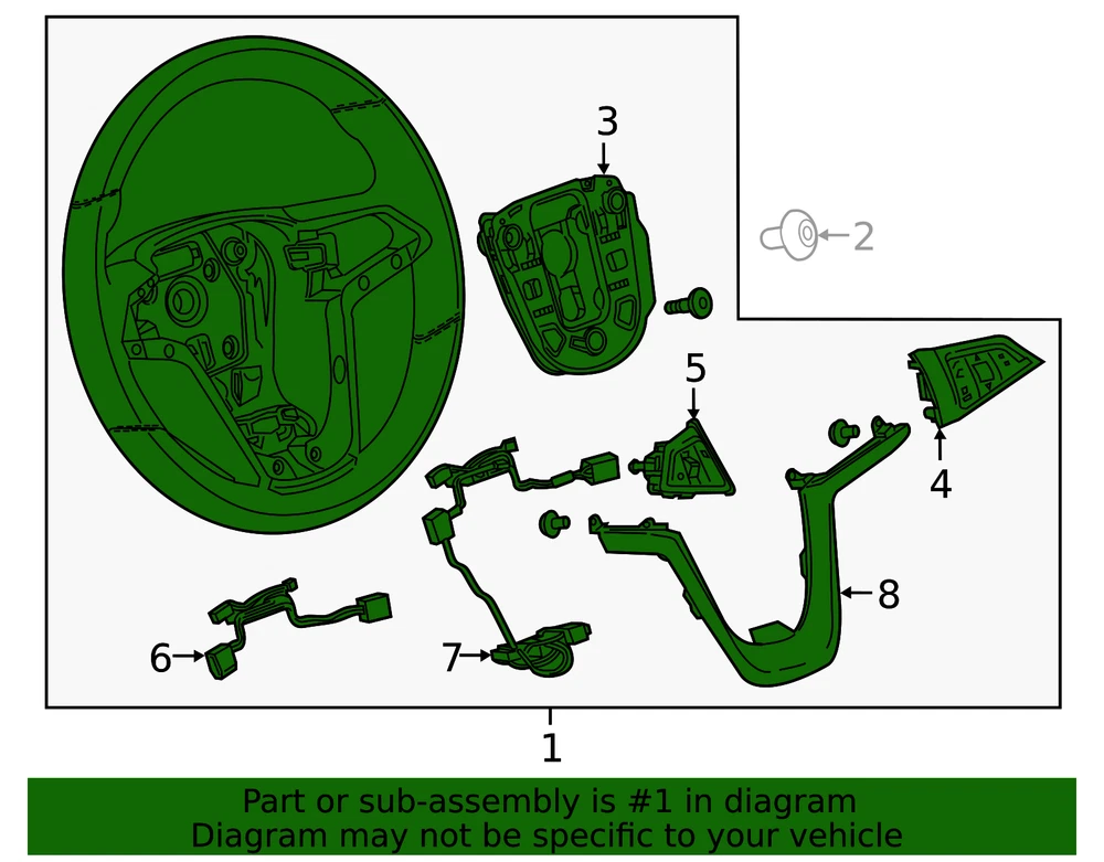 World Parts Direct Genuine GM Jet Black Steering Wheel 42769617 Part can be found as # 1 in the diagram above Product Description Encore. Without collision alert. Without heated wheel. With redundant control. Black. Specifications Brand GM Manufacturer Part Number 42769617 SKU 42769617 Product Genuine GM Jet Black Steering Wheel 42769617 Replaces 42359369 ONLY PART REFERENCE #1 ON THE DIAGRAM IS INCLUDED About Us WorldPartsDirect is a small, Texas based business located in the Dallas metroplex. There are about twenty of us that work tirelessly to get you the genuine, OEM parts you need at unbeatable prices. We pride ourselves in top quality customer service and our commitment to be the business we would want to shop with. We have one of the largest inventory networks in the country along with some of the most aggressive discounts. We love cars, and we love what we do! We hope you will love shopping with us , and we always welcome feedback on how we can make your shopping experience even better. Terms and Conditions Compatibility Guarantee (optional free service): Applies when you include your VIN during or before checkout. Simply click "Message to Seller" during checkout and include your VIN with any relevant details (ex: driver/ passenger side). Our fitment experts will confirm compatibility before shipping. If we determine that you purchased an incompatible part, we will correct your order if possible. If we cannot correct your order, we will notify you of the issue (ex: discontinued item) and give you the option to cancel. Part Authenticity and Warranty Guarantee: When you order from us, we guarantee that you will receive a genuine, OEM part. We do not stock anything aftermarket! Our parts are warrantied nationwide for 1 year at every Mopar (Chrysler/Dodge/Jeep/Ram) or General Motors (Chevrolet/Buick/GM/GMC) dealer in the country, depending on the brand of part you ordered. We are able to provide documentation that proves the validity of your purchase from our licensed dealership at anytime upon request. This documentation can be used to redeem this warranty if needed at the dealership of your choice and at no cost to you. Return Policy All of our products can be returned within 30 days. Please open a request for any of these reasons: Doesn't Fit Changed My Mind Found a Better Price Just Didn't Like it Ordered by Mistake The reason you pick has no impact on your refund amount, but it has a big impact on us as a seller. Choosing other reasons may delay the refund per an internal investigation and potential eBay appeal. If a part fails at anytime during the 1 year warranty period, any licensed new car dealership in the country that carries your brand of vehicle will replace the part for free. Simply request our dealer invoice for the part and provide it to your preferred dealer along with the defective part. Home • Newsletter Signup • Contact Us Copyright © 2024 World Parts Direct , All rights reserved. Solution by RevolutionParts, Inc. :: Design by OCDesignsOnline