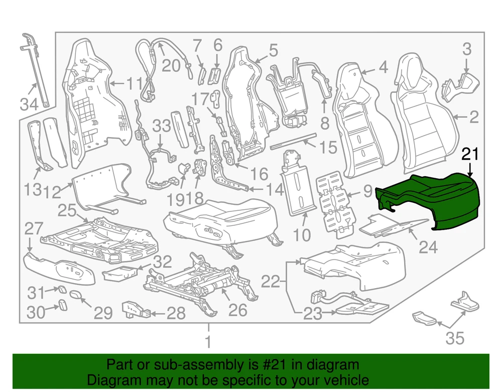World Parts Direct Genuine GM Kalahari Passenger Seat Cushion Cover 22997233 Part can be found as # 21 in the diagram above Product Description With heated, with sport seat, mulan leather, kalahari. Designed for an exact fit to prevent movement on the cushions Available in multiple colors to match the vehicle's interior trim package This GM Genuine Part is designed, engineered, and tested to rigorous standards and is backed by General Motors Collision parts are designed to help promote proper and safe repair Specifications Brand GM Manufacturer Part Number 22997233 SKU 22997233 Product Genuine GM Kalahari Passenger Seat Cushion Cover 22997233 ONLY PART REFERENCE #21 ON THE DIAGRAM IS INCLUDED About Us WorldPartsDirect is a small, Texas based business located in the Dallas metroplex. There are about twenty of us that work tirelessly to get you the genuine, OEM parts you need at unbeatable prices. We pride ourselves in top quality customer service and our commitment to be the business we would want to shop with. We have one of the largest inventory networks in the country along with some of the most aggressive discounts. We love cars, and we love what we do! We hope you will love shopping with us , and we always welcome feedback on how we can make your shopping experience even better. Terms and Conditions Compatibility Guarantee (optional free service): Applies when you include your VIN during or before checkout. Simply click "Message to Seller" during checkout and include your VIN with any relevant details (ex: driver/ passenger side). Our fitment experts will confirm compatibility before shipping. If we determine that you purchased an incompatible part, we will correct your order if possible. If we cannot correct your order, we will notify you of the issue (ex: discontinued item) and give you the option to cancel. Part Authenticity and Warranty Guarantee: When you order from us, we guarantee that you will receive a genuine, OEM part. We do not stock anything aftermarket! Our parts are warrantied nationwide for 1 year at every Mopar (Chrysler/Dodge/Jeep/Ram) or General Motors (Chevrolet/Buick/GM/GMC) dealer in the country, depending on the brand of part you ordered. We are able to provide documentation that proves the validity of your purchase from our licensed dealership at anytime upon request. This documentation can be used to redeem this warranty if needed at the dealership of your choice and at no cost to you. Return Policy All of our products can be returned within 30 days. Please open a request for any of these reasons: Doesn't Fit Changed My Mind Found a Better Price Just Didn't Like it Ordered by Mistake The reason you pick has no impact on your refund amount, but it has a big impact on us as a seller. Choosing other reasons may delay the refund per an internal investigation and potential eBay appeal. If a part fails at anytime during the 1 year warranty period, any licensed new car dealership in the country that carries your brand of vehicle will replace the part for free. Simply request our dealer invoice for the part and provide it to your preferred dealer along with the defective part. Home • Newsletter Signup • Contact Us Copyright © 2024 World Parts Direct , All rights reserved. Solution by RevolutionParts, Inc. :: Design by OCDesignsOnline