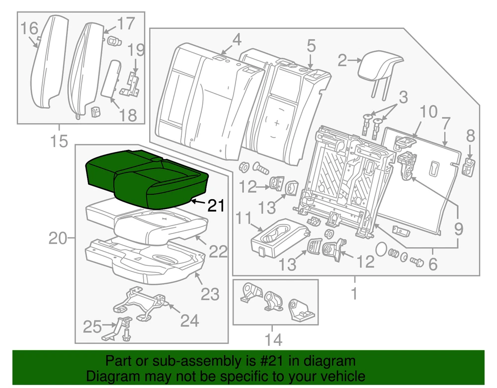 aaronchevrolet Genuine GM Medium Titanium Rear Driver Side Seat Cushion Cover 95083363 Part can be found as # 21 in the diagram above Product Description 60% seat, without leather, titanium. Designed for an exact fit to prevent movement on the cushions Available in multiple colors to match the vehicle's interior trim package This GM Genuine Part is designed, engineered, and tested to rigorous standards and is backed by General Motors Collision parts are designed to help promote proper and safe repair Specifications Brand GM Manufacturer Part Number 95083363 SKU 95083363 Product Genuine GM Medium Titanium Rear Driver Side Seat Cushion Cover 95083363 ONLY PART REFERENCE #21 ON THE DIAGRAM IS INCLUDED WARNING : May cause cancer and reproductive harm. See www.P65Warnings.ca.gov for more info. Terms and Conditions Thank you for shopping with us. Please find our policies below. If you have any other questions, please don't hesitate to contact us. Shipping Terms If you are located in Alaska, Hawaii or Puerto Rico Please contact us via eBay email to discuss shipping cost In stock orders ship within 24 hours. Weekend orders will be processed the next business day. If a part is not in stock and must be ordered from the manufacturer, it usually takes 2-3 days to arrive to us and will be promptly shipped to you. Most of the orders are shipped complete within 2-3 business days. A few of the parts ordered from the manufacturer may take up to 5-6 business days to arrive and will shipped to you immediately. Depending upon location, ground shipments usually take 2-7 days. Your order may be shipped Overnight for an additional cost. Oversized shipments will be additional; you will be contacted prior to shipping for approval. We cannot guarantee transit times for ground and oversize orders. Shipping Carrier substitutions may be made at our determination in an attempt to reduce shipping cost to the customer. We do not ship internationally. In the unlikely event that a part has been placed on backorder or discontinued, we will do our best to try and find one for you as quickly as possible. We do not ship COD orders. Return Policy Contact us to arrange for any returns. A copy of the invoice will need to be included with the return. Parts must be resaleable and in the original packaging. We cannot take back used parts. We cannot take back installed or tried parts. Electrical parts are not returnable. We do reserve the right to refuse and return any parts we find have been installed, are used or do not meet the above criteria. Return request need to be within 30 days of receipt. Cancellation Policy An order or a portion of an order may be cancelled up until the time it is shipped and no longer in our possession. Home • Newsletter Signup • Contact Us Copyright © 2025 aaronchevrolet , All rights reserved. Solution by RevolutionParts, Inc. :: Design by OCDesignsOnline
