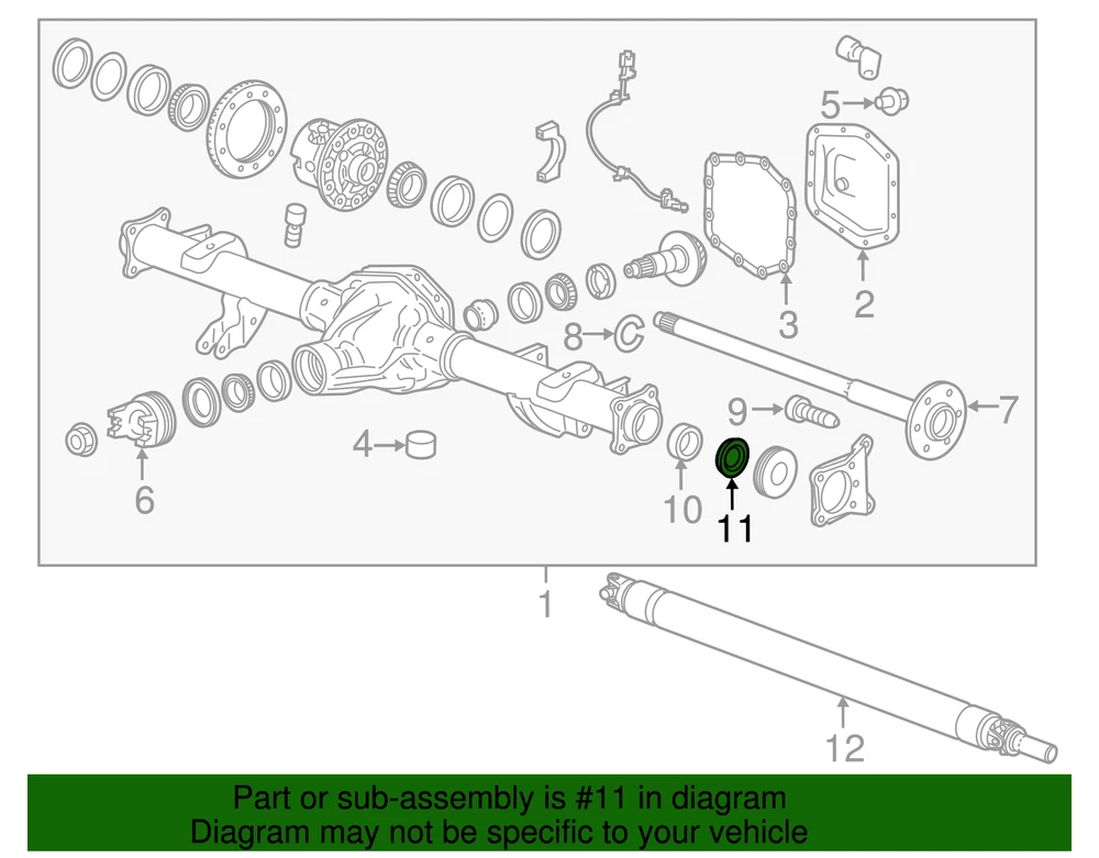 Manufacturer Part Number: 23490372 Brand: GM Year: 2015 2016 2017 2018 2019 2020 2021 2022 Fitment Type: Direct Replacement SKU: 23490372 Model: Colorado Canyon Genuine OEM: Yes Manufacturer Warranty: 1 Year Make: Chevrolet GMC Product Name: Genuine GM Rear Axle Shaft Seal 23490372 Parts Included: ONLY PART REFERENCE #11 ON THE DIAGRAM IS INCLUDED