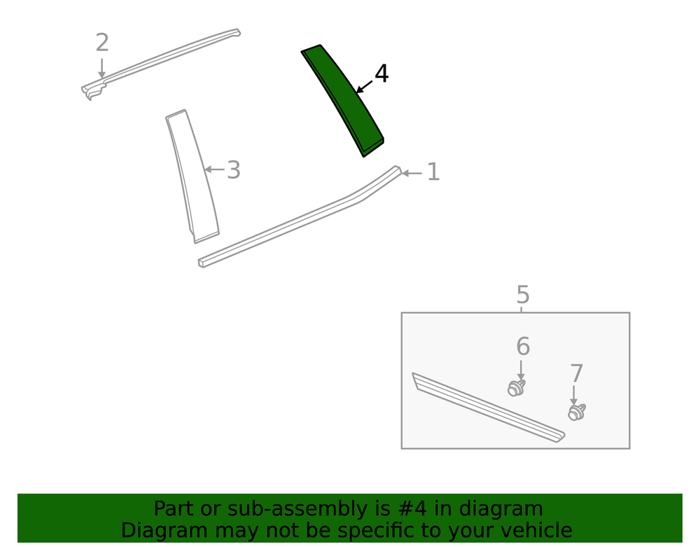 World Parts Direct Genuine GM Rear Driver Side Door Window Frame Rear Applique 84988285 Part can be found as # 4 in the diagram above Product Description Helps protect and enhance the appearance of your vehicle's door This GM Genuine Part is designed, engineered, and tested to rigorous standards and is backed by General Motors Specifications Brand GM Manufacturer Part Number 84988285 SKU 84988285 Product Genuine GM Rear Driver Side Door Window Frame Rear Applique 84988285 Replaces 84711350, 84802747, 84877799, 85665201 ONLY PART REFERENCE #4 ON THE DIAGRAM IS INCLUDED About Us WorldPartsDirect is a small, Texas based business located in the Dallas metroplex. There are about twenty of us that work tirelessly to get you the genuine, OEM parts you need at unbeatable prices. We pride ourselves in top quality customer service and our commitment to be the business we would want to shop with. We have one of the largest inventory networks in the country along with some of the most aggressive discounts. We love cars, and we love what we do! We hope you will love shopping with us , and we always welcome feedback on how we can make your shopping experience even better. Terms and Conditions Compatibility Guarantee (optional free service): Applies when you include your VIN during or before checkout. Simply click "Message to Seller" during checkout and include your VIN with any relevant details (ex: driver/ passenger side). Our fitment experts will confirm compatibility before shipping. If we determine that you purchased an incompatible part, we will correct your order if possible. If we cannot correct your order, we will notify you of the issue (ex: discontinued item) and give you the option to cancel. Part Authenticity and Warranty Guarantee: When you order from us, we guarantee that you will receive a genuine, OEM part. We do not stock anything aftermarket! Our parts are warrantied nationwide for 1 year at every Mopar (Chrysler/Dodge/Jeep/Ram) or General Motors (Chevrolet/Buick/GM/GMC) dealer in the country, depending on the brand of part you ordered. We are able to provide documentation that proves the validity of your purchase from our licensed dealership at anytime upon request. This documentation can be used to redeem this warranty if needed at the dealership of your choice and at no cost to you. Return Policy All of our products can be returned within 30 days. Please open a request for any of these reasons: Doesn't Fit Changed My Mind Found a Better Price Just Didn't Like it Ordered by Mistake The reason you pick has no impact on your refund amount, but it has a big impact on us as a seller. Choosing other reasons may delay the refund per an internal investigation and potential eBay appeal. If a part fails at anytime during the 1 year warranty period, any licensed new car dealership in the country that carries your brand of vehicle will replace the part for free. Simply request our dealer invoice for the part and provide it to your preferred dealer along with the defective part. Home • Newsletter Signup • Contact Us Copyright © 2025 World Parts Direct , All rights reserved. Solution by RevolutionParts, Inc. :: Design by OCDesignsOnline