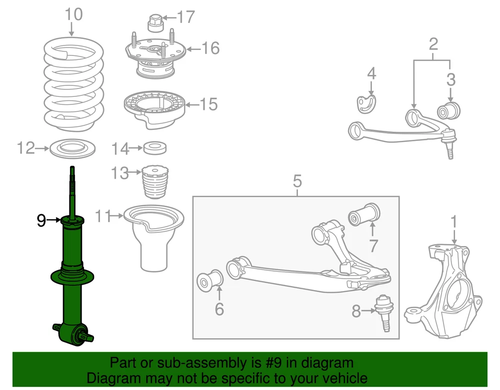 VRAY-GMC Genuine GM Shock Absorber 23124591 Part can be found as # 9 in the diagram above Product Description Yukon XL, Suburban. Without magneride package. Code 6pf, 6py, 6pz. Escalade ESV. 2wd, without magneride, delco# 540-1628. Tahoe, Yukon, Escalade. Code 7pf, 7py, 7pz. 4wd, without magneride, delco# 540-1628. Specifications Brand GM Manufacturer Part Number 23124591 SKU 23124591 Product Genuine GM Shock Absorber 23124591 Replaces 22986251 ONLY PART REFERENCE #9 ON THE DIAGRAM IS INCLUDED WARNING : May cause cancer and reproductive harm. See www.P65Warnings.ca.gov for more info. Terms and Conditions Thank you for shopping with us. Please find our policies below. If you have any other questions, please don't hesitate to contact us. Shipping Terms In stock orders ship within 24 hours. Weekend orders will be processed the next business day. If a part is not in stock and must be ordered from the manufacturer, it usually takes 2-3 days to arrive to us and will be promptly shipped to you. Most of the orders are shipped complete within 2-3 business days. A few of the parts ordered from the manufacturer may take up to 5-6 business days to arrive and will shipped to you immediately. Depending upon location, ground shipments usually take 2-7 days. Your order may be shipped Overnight for an additional cost. Oversized shipments will be additional; you will be contacted prior to shipping for approval. We cannot guarantee transit times for ground and oversize orders. Shipping Carrier substitutions may be made at our determination in an attempt to reduce shipping cost to the customer. We do not ship internationally. In the unlikely event that a part has been placed on backorder or discontinued, we will do our best to try and find one for you as quickly as possible. We do not ship COD orders. Return Policy Contact us to arrange for any returns. A copy of the invoice will need to be included with the return. Parts must be resaleable and in the original packaging. We cannot take back used parts. We cannot take back installed or tried parts. Electrical parts are not returnable. We do reserve the right to refuse and return any parts we find have been installed, are used or do not meet the above criteria. Return request need to be within 30 days of receipt. Cancellation Policy An order or a portion of an order may be cancelled up until the time it is shipped and no longer in our possession. Home • Newsletter Signup • Contact Us Copyright © 2025 VRAY-GMC , All rights reserved. Solution by RevolutionParts, Inc. :: Design by OCDesignsOnline