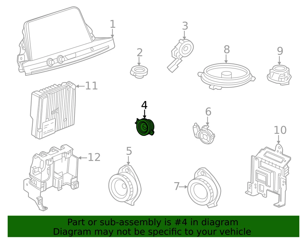 World Parts Direct Genuine GM Speaker 84922490 Part can be found as # 4 in the diagram above Product Description Radio & components. CT4. Front door. With v blackwing. LYRIQ. Rear corner upper garnish. Specifications Brand GM Manufacturer Part Number 84922490 SKU 84922490 Product Genuine GM Speaker 84922490 ONLY PART REFERENCE #4 ON THE DIAGRAM IS INCLUDED About Us WorldPartsDirect is a small, Texas based business located in the Dallas metroplex. There are about twenty of us that work tirelessly to get you the genuine, OEM parts you need at unbeatable prices. We pride ourselves in top quality customer service and our commitment to be the business we would want to shop with. We have one of the largest inventory networks in the country along with some of the most aggressive discounts. We love cars, and we love what we do! We hope you will love shopping with us , and we always welcome feedback on how we can make your shopping experience even better. Terms and Conditions Compatibility Guarantee (optional free service): Applies when you include your VIN during or before checkout. Simply click "Message to Seller" during checkout and include your VIN with any relevant details (ex: driver/ passenger side). Our fitment experts will confirm compatibility before shipping. If we determine that you purchased an incompatible part, we will correct your order if possible. If we cannot correct your order, we will notify you of the issue (ex: discontinued item) and give you the option to cancel. Part Authenticity and Warranty Guarantee: When you order from us, we guarantee that you will receive a genuine, OEM part. We do not stock anything aftermarket! Our parts are warrantied nationwide for 1 year at every Mopar (Chrysler/Dodge/Jeep/Ram) or General Motors (Chevrolet/Buick/GM/GMC) dealer in the country, depending on the brand of part you ordered. We are able to provide documentation that proves the validity of your purchase from our licensed dealership at anytime upon request. This documentation can be used to redeem this warranty if needed at the dealership of your choice and at no cost to you. Return Policy All of our products can be returned within 30 days. Please open a request for any of these reasons: Doesn't Fit Changed My Mind Found a Better Price Just Didn't Like it Ordered by Mistake The reason you pick has no impact on your refund amount, but it has a big impact on us as a seller. Choosing other reasons may delay the refund per an internal investigation and potential eBay appeal. If a part fails at anytime during the 1 year warranty period, any licensed new car dealership in the country that carries your brand of vehicle will replace the part for free. Simply request our dealer invoice for the part and provide it to your preferred dealer along with the defective part. Home • Newsletter Signup • Contact Us Copyright © 2024 World Parts Direct , All rights reserved. Solution by RevolutionParts, Inc. :: Design by OCDesignsOnline