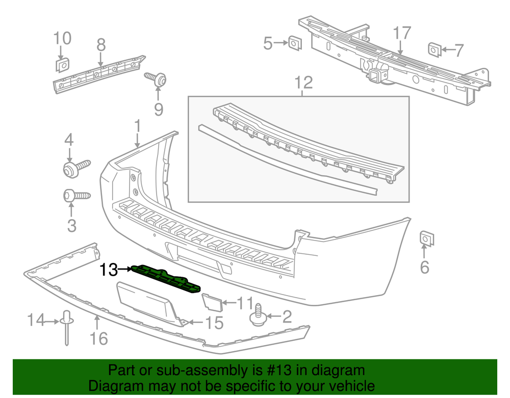 aaronchevrolet Genuine GM Tow Hook Bracket 22938785 Part can be found as # 13 in the diagram above Product Description Yukon XL, cover & components. This GM Genuine Part is designed, engineered, and tested to rigorous standards and is backed by General Motors Specifications Brand GM Manufacturer Part Number 22938785 SKU 22938785 Product Genuine GM Tow Hook Bracket 22938785 ONLY PART REFERENCE #13 ON THE DIAGRAM IS INCLUDED WARNING : May cause cancer and reproductive harm. See www.P65Warnings.ca.gov for more info. Terms and Conditions Thank you for shopping with us. Please find our policies below. If you have any other questions, please don't hesitate to contact us. Shipping Terms If you are located in Alaska, Hawaii or Puerto Rico Please contact us via eBay email to discuss shipping cost In stock orders ship within 24 hours. Weekend orders will be processed the next business day. If a part is not in stock and must be ordered from the manufacturer, it usually takes 2-3 days to arrive to us and will be promptly shipped to you. Most of the orders are shipped complete within 2-3 business days. A few of the parts ordered from the manufacturer may take up to 5-6 business days to arrive and will shipped to you immediately. Depending upon location, ground shipments usually take 2-7 days. Your order may be shipped Overnight for an additional cost. Oversized shipments will be additional; you will be contacted prior to shipping for approval. We cannot guarantee transit times for ground and oversize orders. Shipping Carrier substitutions may be made at our determination in an attempt to reduce shipping cost to the customer. We do not ship internationally. In the unlikely event that a part has been placed on backorder or discontinued, we will do our best to try and find one for you as quickly as possible. We do not ship COD orders. Return Policy Contact us to arrange for any returns. A copy of the invoice will need to be included with the return. Parts must be resaleable and in the original packaging. We cannot take back used parts. We cannot take back installed or tried parts. Electrical parts are not returnable. We do reserve the right to refuse and return any parts we find have been installed, are used or do not meet the above criteria. Return request need to be within 30 days of receipt. All returns are subject to inspection Shipping cost will not be refunded Cancellation Policy An order or a portion of an order may be cancelled up until the time it is shipped and no longer in our possession. Home • Newsletter Signup • Contact Us Copyright © 2025 aaronchevrolet , All rights reserved. Solution by RevolutionParts, Inc. :: Design by OCDesignsOnline