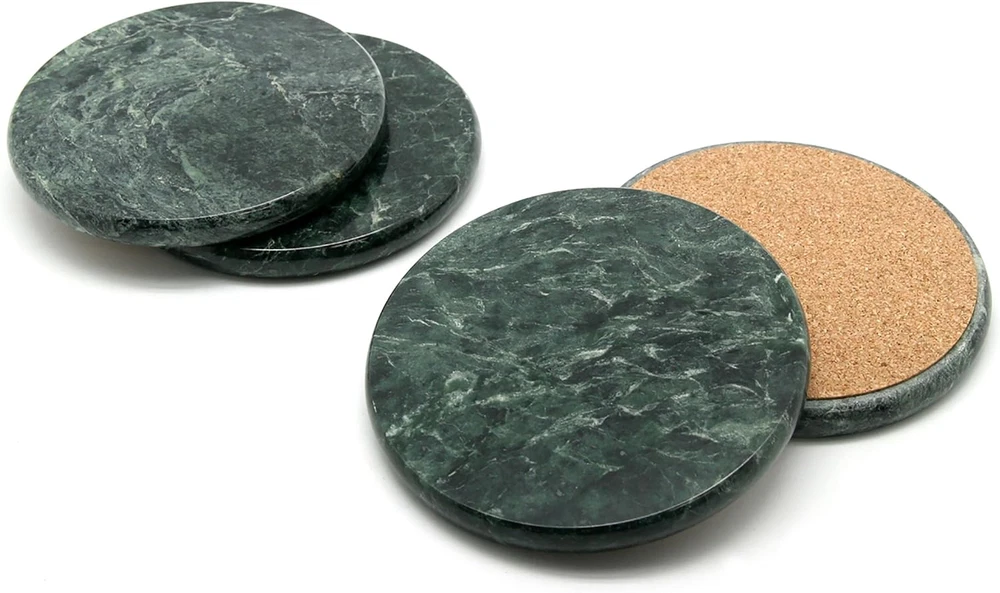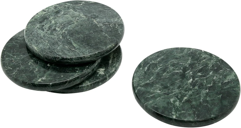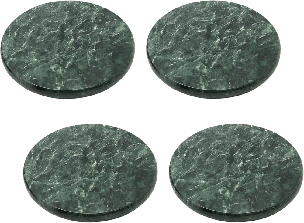 Genuine Green Marble Stone Set of 4 round Coaster Set