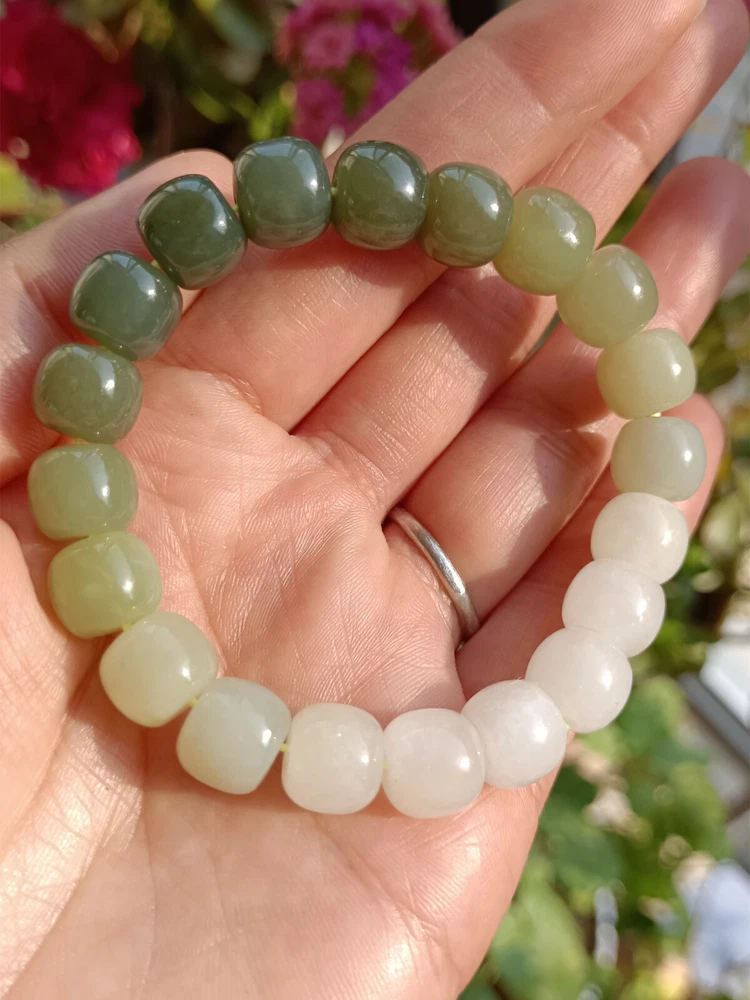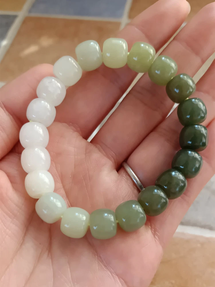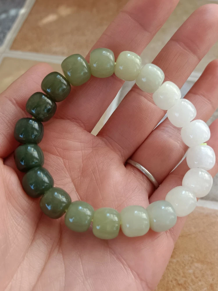 Absolutely love this jade bracelet! The gradient green is stunning, feels smooth and cool against my skin. Came with certificate and nice packaging. Shipping took a while but totally worth the wait for such a quality piece.