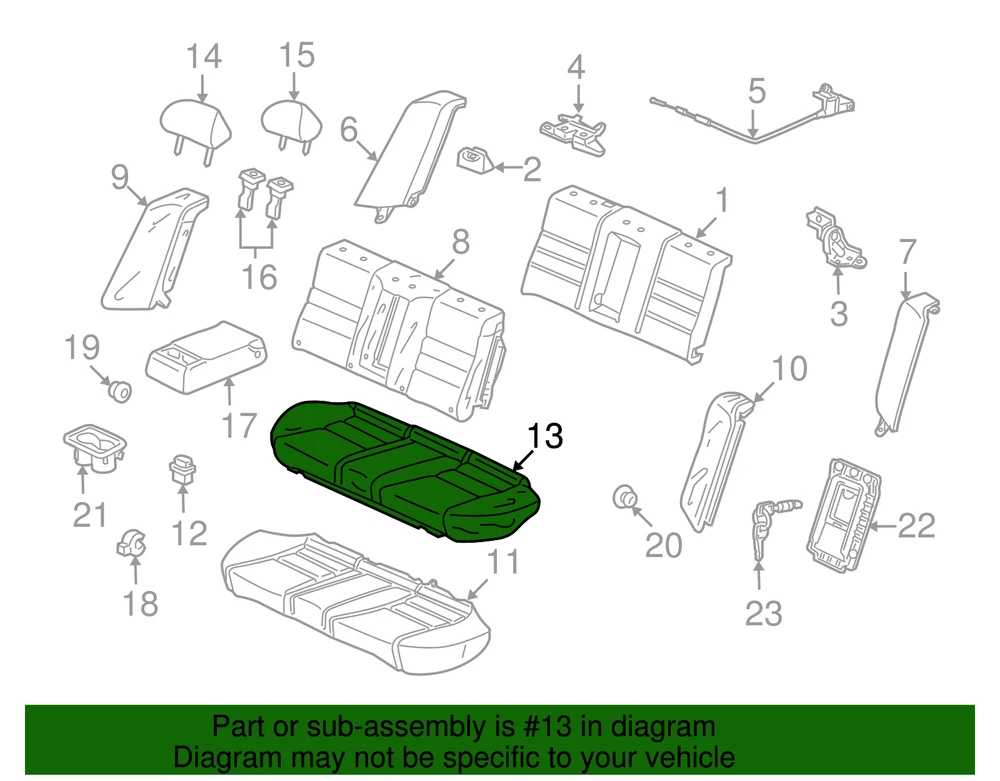 hillcountryhondaparts Genuine Honda Cushion Cover 82131-TA5-A42ZA Part can be found as # 13 in the diagram above Genuine Honda Parts Product Description Sedan, us built, ex, black. Specifications Brand Honda Manufacturer Part Number 82131-TA5-A42ZA SKU 82131-TA5-A42ZA Product Genuine Honda Cushion Cover 82131-TA5-A42ZA ONLY PART REFERENCE #13 ON THE DIAGRAM IS INCLUDED WARNING : May cause cancer and reproductive harm. See www.P65Warnings.ca.gov for more info. Thank you for your genuine Honda parts order! Samuel Contreras Hill Country Honda Terms and Conditions Thank you for shopping with us. Please find our policies below. If you have any other questions, please don't hesitate to contact us. Shipping Terms In stock orders ship within 24 hours. Weekend orders will be processed the next business day. If a part is not in stock and must be ordered from the manufacturer, it usually takes 2-3 days to arrive to us and will be promptly shipped to you. Most of the orders are shipped complete within 2-3 business days. A few of the parts ordered from the manufacturer may take up to 5-6 business days to arrive and will shipped to you immediately. Depending upon location, ground shipments usually take 2-7 days. Your order may be shipped Overnight for an additional cost. Oversized shipments will be additional; you will be contacted prior to shipping for approval. We cannot guarantee transit times for ground and oversize orders. Shipping Carrier substitutions may be made at our determination in an attempt to reduce shipping cost to the customer. We do not ship internationally. In the unlikely event that a part has been placed on backorder or discontinued, we will do our best to try and find one for you as quickly as possible. We do not ship COD orders. Return Policy Contact us to arrange for any returns. A copy of the invoice will need to be included with the return. Parts must be resaleable and in the original packaging. We cannot take back used parts. We cannot take back installed or tried parts. Electrical parts are not returnable. We do reserve the right to refuse and return any parts we find have been installed, are used or do not meet the above criteria. Return request need to be within 30 days of receipt. Cancellation Policy An order or a portion of an order may be cancelled up until the time it is shipped and no longer in our possession. Home • Newsletter Signup • Contact Us Copyright © 2024 hillcountryhondaparts , All rights reserved. Solution by RevolutionParts, Inc. :: Design by OCDesignsOnline