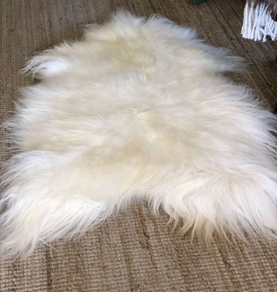 Genuine Icelandic sheepskin Rug long fur Ivory White Rug Super Soft Sheepskin rug, Home Decor Floor Mats FEATURES: Material: 100 % Genuine Sheepskins Rug - Color: Ivory/ White (color may vary due to natural skins) - Fast Shipping throughout - Size: 2 X 3 ft. ( 60 X 90 cm) approx. - Quality guaranty Soft Wool This sheepskin rug measures approximately 2ft x 3ft on the fur side. The rug is made from the finest sheepskin and offers a 4+ Inch thick pile height. Because of the Handmade nature of this product, each rug can vary in size up to 3-4 inches in either The sheepskin fiber provides a warming feeling during the winter and a cooling effect during the summer. The fur is not dyed and has a natural color which may vary from Ivory Grey Brown Sanitized against germs. Non-Toxic and Hypovalve * Natural sheepskin rugs, versatile and functional, can serve various purposes of adding warmth, texture, and style to any room in the home, whether it's as a floor covering, bedside rug, seat cover or pad, wall hanging, baby blanket, pet bed or in-car seat pad. * Suitable for any type of surface. No need for anti-slip underlay pads. * Free Shipping on this item. * Permanent and beautiful natural color. No color fading issues even in direct sunlight. * This beautiful and fluffy natural sheepskin rug is perfect to use on the floor or as an accent piece on your bed or sofa and will add luxury and comfort to your room. * he highest quality New Zealand Wool, this sheepskin rug is of a much higher quality than the cheap options in the market. Regular light brushing or shaking will assist in keeping the skin's natural characteristics. * This product can be machine washed. Pre soak in 40-degree water and wash in a wool cycle. Rinse until water is clear and then spin dry to remove any excess water. Gently comb wool whilst still damp. Slow drying will give best results, line dry away from direct sunlight. Once dry, stretch by hand in all directions. * This product can be professionally dry cleaned. Classic sheepskins are designed to be loved and are a durable piece that can last a life time. Ease of care is simple with the occasional vacuuming, shaking and brushing helps keep your sheepskin like new. The most popular and luxurious long wool. Shipping Worldwide: Free and Fastest Shipping to US, UK, CANADA, and EUROPE. Please be advised that we ship worldwide from our warehouses located in CANADA, USA, Dubai and PK / Overseas. The shipping location varies depending on the product availability and fastest delivery options. Returns: Returns are not acceptable in this case, since our product is natural and will be 100% same as pictured. Every sheepskin is slight different from the other. But genuine leather is guaranteed. Only if the product you received is not found genuine, damage or not as described then you can ask for return. Contact us: We will respond to each & every query through Etsy emailing system, response to your queries takes 12 to 24 hours or earlier.
