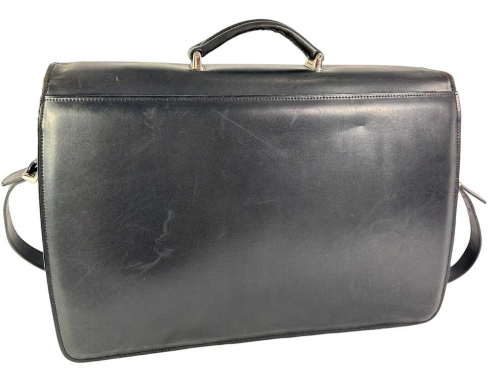 Measurements are 16"3 wide, 11"8 high, 4"7 deep with a 48 "shoulder strap with a 19" drop. On the interior there are two main compartments, lined fabric interior, mid zip pocket along with multi use pockets and a front flap closure. The leather is thick and strong with a top handle, large exterior pocket, silver tone hardware, detachable shoulder strap and is in good condition. This briefcase is great for work, school and travel and is spacious. There are several light scuffs with no tears and is 100% Jack Georges in good condition for its age. I SHIP WORLDWIDE I want to stress that item is vintage which means it's not new. All my customers are very important to me and I believe communication is very important. I do not sell or encourage any one to sell fakes. I do gladly combine shipping and items returned to me by the post office will be charged additional postage upon being reshipped. Any questions please email me and I will be more than happy to answer all your questions. No refunds. Contact Items are sold as is and if you have an questions please let me know before you purchase item. Shipping Shipping is done with USPS priority mail within the U.S. and shipping takes 4-5 business days from the date of payment. Please note I do combine shipping. If you have any questions please feel free to email me.