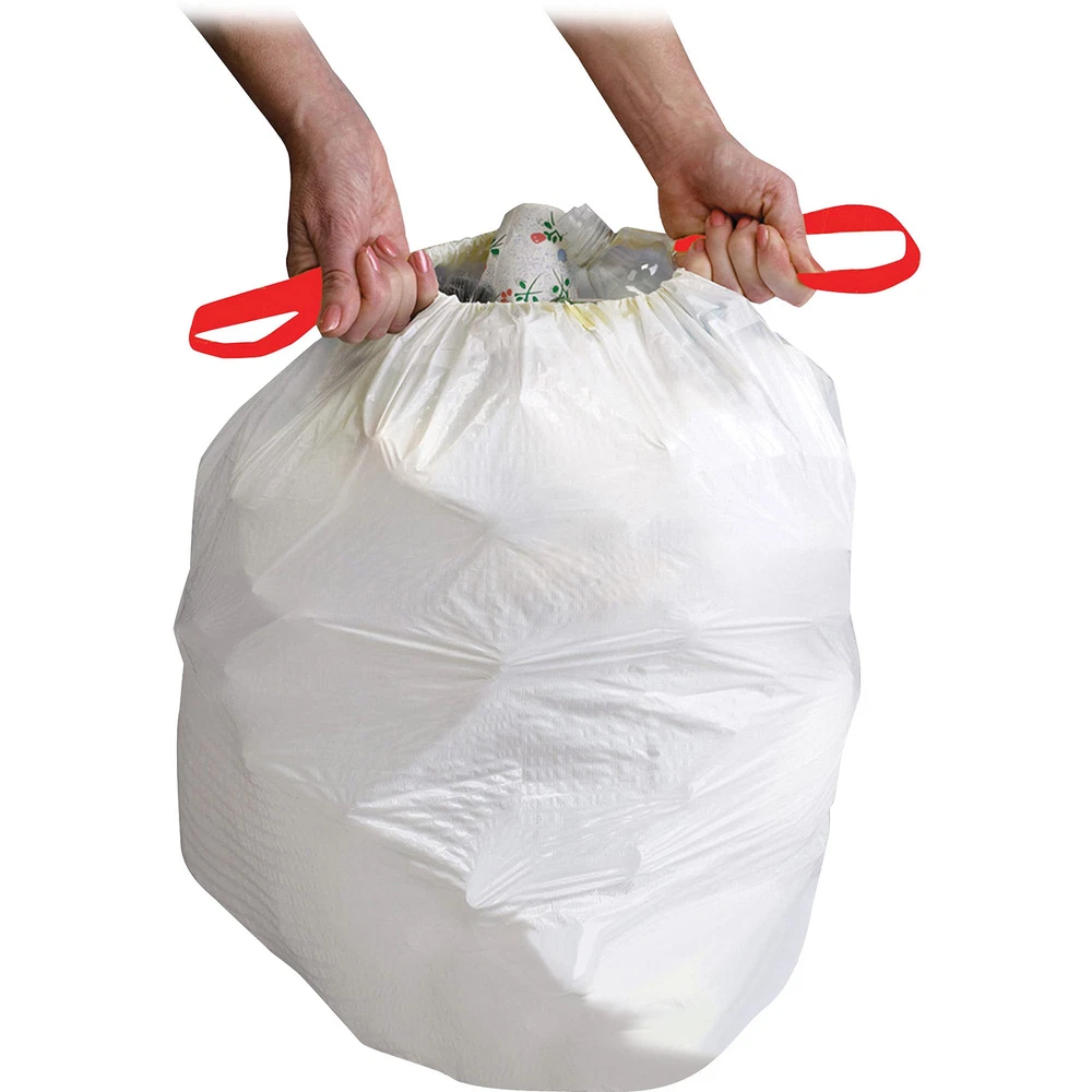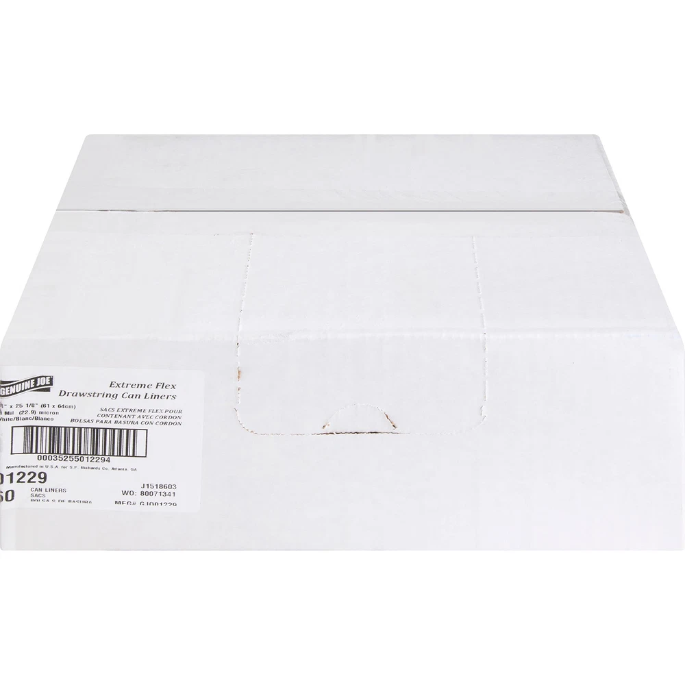 Flexible, drawstring, trash can liners are extremely flexible and expand around all sorts of objects and trash. State-of-the-art linear, 0.9 mil, low-density resin offers superior puncture-resistance. Patterned design makes it easy to differentiate from regular drawstring liners. Convenient drawstring closure keeps hands clean and free of trash. Each extra heavy-duty, can liner holds 13 gallons. Extremely flexible and expand around all sorts of objects and trash Offers superior puncture-resistance Patterned design Drawstring closure keeps hands clean and free of trash