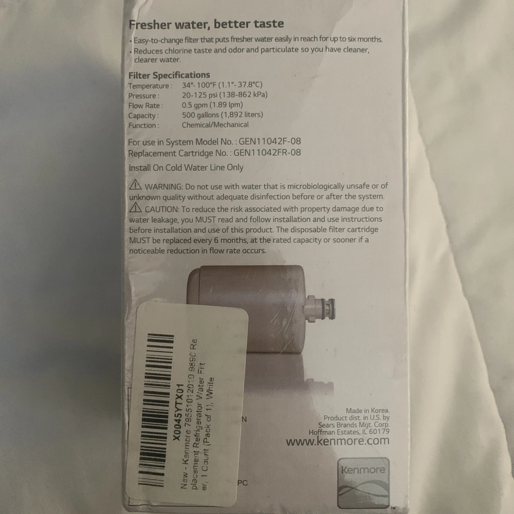 Genuine Kenmore Refrigerator Water Filter 469890 New. Condition is New. Shipped with USPS Ground Advantage.