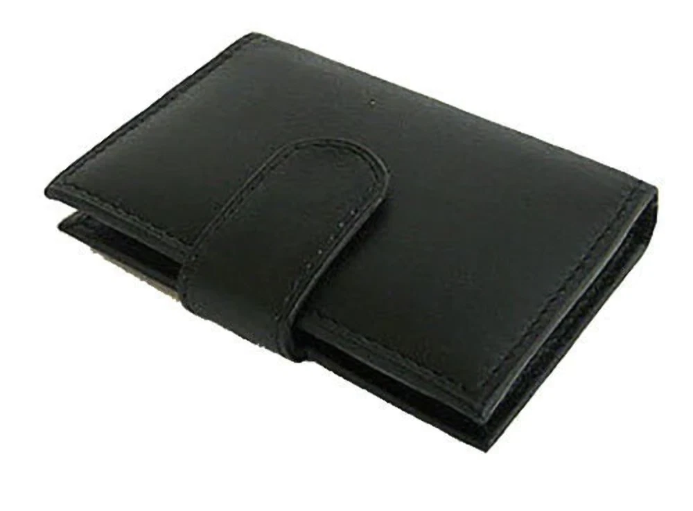 Features: Condition: New Material: 100% Genuine Leather Color: Black Length: 4.25 inches Width: 3 inches Inside Detail: 10-20+ Business Card inserts and Credit card holder, picture ID, Other Compartment for Inserts.