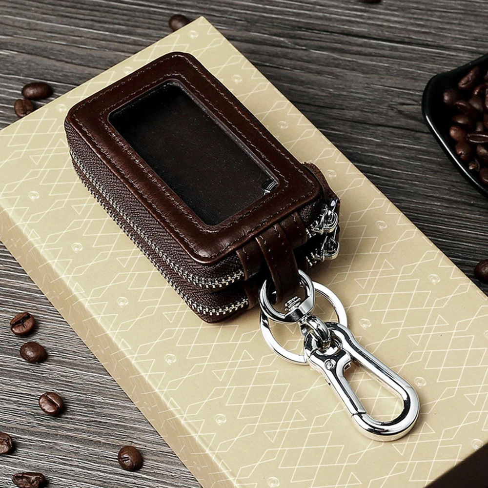 Features: Genuine Leather Material: Our key chaincase is made with a high-quality of genuine leather, which has a clear texture and soft feel. What’s more, the car key chain holder has strong toughness, easy to care and is not easy to wear out. Functional Double Layers: This car key holder is designed into two layers. One layer with a clear plastic window is used to place the car key. Through the clear window of the wall key holder, you can operate your car key directly without unzipping. While you can put your house keys, changes or coins into the other pocket of the small wallet with key ring Built-in Key Rings: In order to prevent your keys and car key from sliding out from the key chains, we have placed two key ring clips in each layer of our key holder for wall so that you can buckle your keys on the rings. It is really convenient and secure. Big Metal Hook: The material of the pothook of our key smart compact key holder is made of alloy with electroplating surface, which has high solidity and strong bite force. The hooks of the card cases are firm, stable and durable. Double Zippers: Our key chain wallet is installed with two zippers. Both zippers have been tested by hundreds of times before sold. The zippers of our leather keychain holder are not easy to damage and get stuck. Simple but personalized design style makes our key holder organizer fashionable and functional Specifications: Closure Type: Zipper Material: Genuine Leather Suitable for car keys of 8.5*5*1.5cm or below Package include: 1 x Key Bag (Key is NOT included.)