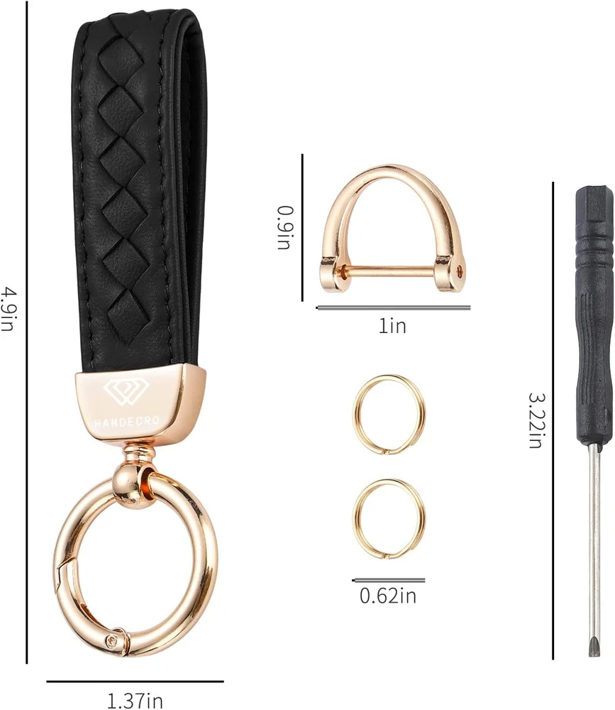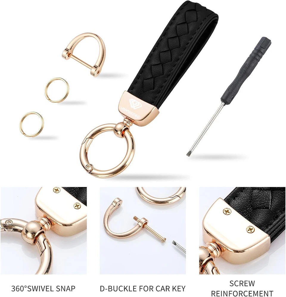 Store New Arrivals Add to Favorite View Feedback Contact Fast deliveries to the customer's home Quality customer service John Make the customers happy! Genuine Leather Car Keychain, Handmade Knit Sheepskin Key Chains for Women, Universal Key Fob Holder with 360 Degree Rotatable, Anti-Lost D-Ring, 2 Keyrings and 1 Screwdriver – Black Description 【Premium Genuine Leather】Precisely crafted from genuine leather used for the hand strap is from the animal sheep and it is genuine, fine leather texture, soft feel, and soft luster. With rust-resistant zinc alloy, this keychain is flexibility, strudy and anti-oxidation. 【Multi-Purpose & Practical】The keychain fits the size of your palm to make your key easy to use.Great for attach car keys, home and office key, it’s also a great gift for family, friends and colleagues on Mother's Day/Father's Day, Christmas, birthday, etc. 【Anti-Lost Design】Wear-resistant and sturdy D-shaped ring is specially designed for various car key installation, with screw cap makes it tighter and never fall off automatically. 【Multi-colors】With muti-colors of pink, black, purple, red, white, brown, yellow, wine red, blue and green available, this keychain for keys are great for women and men. 【Dimensions & Package Includes】: The key ring measures approx. 4.90 inches in total length,including zinc alloy, and 1.37 inches in width. The packaging includes 1 x sheepskin leather keychain,1 x D-ring,2 x keyrings,1 x screwdriver. Product Description Soft and Comfortable Material Precisely crafted from genuine leather used for the hand strap is from the animal sheep and it is genuine, fine leather texture, soft feel, and soft luster Anti-Lost Design Wear-resistant and sturdy D-shaped ring is specially designed for various car key installation, with screw cap makes it tighter and never fall off automatically. Metal Spring Clip Designed with quick release spring clip , it is easy to install or remove your keys. With the design it is great for attach car keys, home and office keys. Closure Type Snap Hook Style Modern Color Black Material Leather,Zinc Alloy Country of Origin China Shape Animal Package Dimensions 7.01 x 2.24 x 0.51 inches Item Weight 1.13 ounces Theme Animal,Car Special Features Lightweight Number of Pieces 1 Special Feature Lightweight Model Leather Keychain Included Components D-ring,Keyrings,Screwdriver ABOUT US We offer the best prices around on high quality products. Our E-store includes media such as books, movies, music and games while offering electronics, toys, sporting apparel, clothing, tools, general home, garden items and more. SHIPPING We are always working hard to ensure your package arrives as soon as possible. Please understand that some factors like weather, high postal traffic, and the performance of shipping companies are outside of our control. We offer free shipping to the lower 48 states and ship within 2 business days of payment, usually sooner. We do not accept P.O. Boxes. Please provide a physical address. For shipping outside of the continental USA, we only use eBay's Global Shipping Program. The item is shipped to KY and then sent to the rest of the world. International customers are responsible for all duties and taxes. Continue to 'check out' to calculate costs for shipping the item to your country. Messages regarding eBay's Global Shipping Program MUST be directed at eBay EXCLUSIVELY. RETURNS We offer a 30-Day Return Policy on items in which you are not completely satisfied with. You have the option of a full-refund or an exchange of the item. No returns are available on items shipped outside of the USA PAYMENT We accept PayPal. CONTACT US This page content is yet to come Please ad us to your favorite seller and visit again later Thank You CUSTOMER SATISFACTION We try our very best to make sure every customer is completely satisfied. If there's a problem, message us! We're happy to help. WE ACCEPT