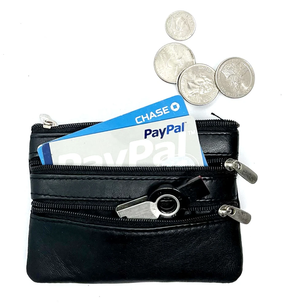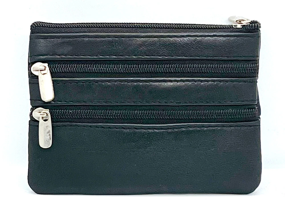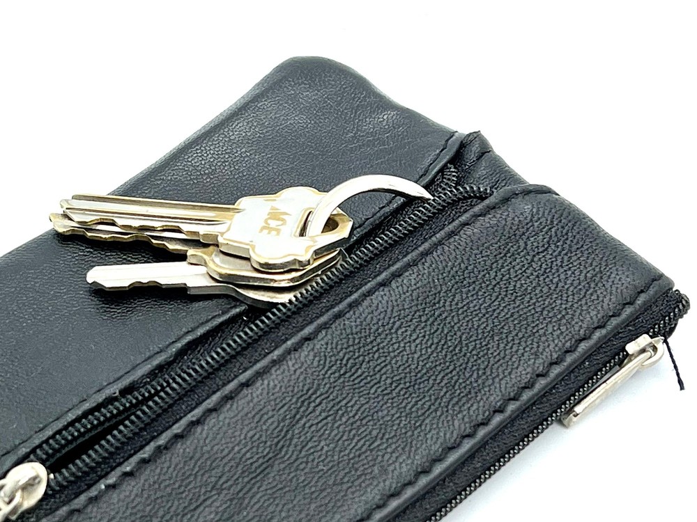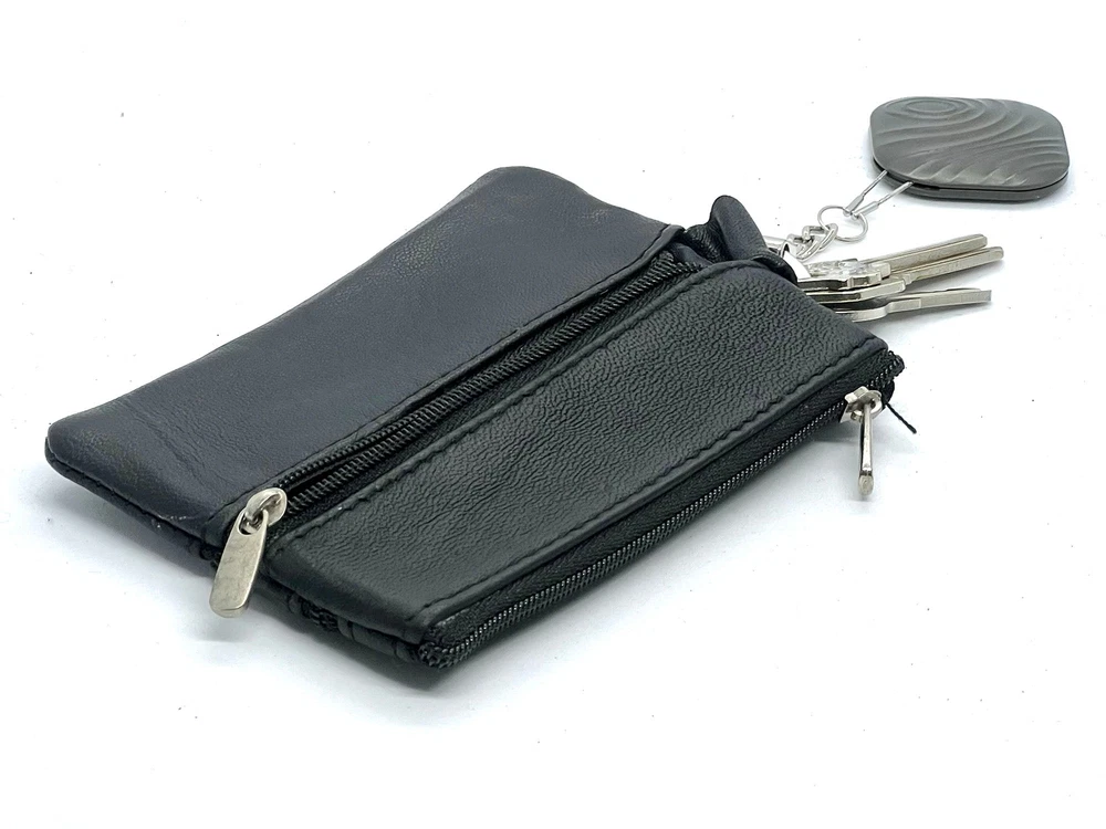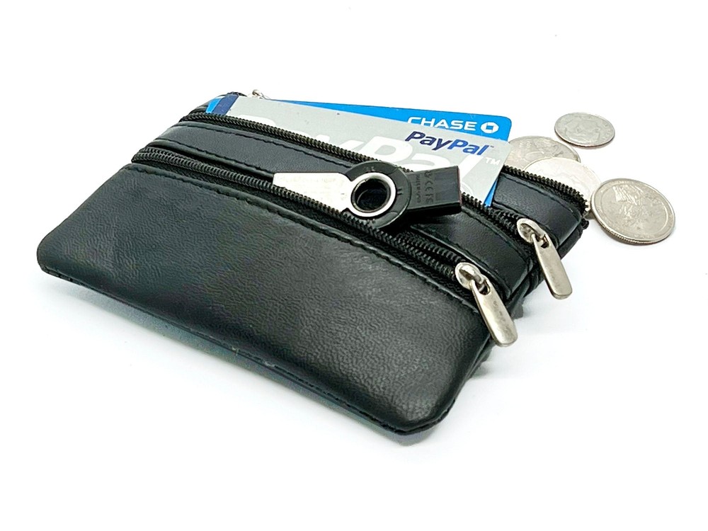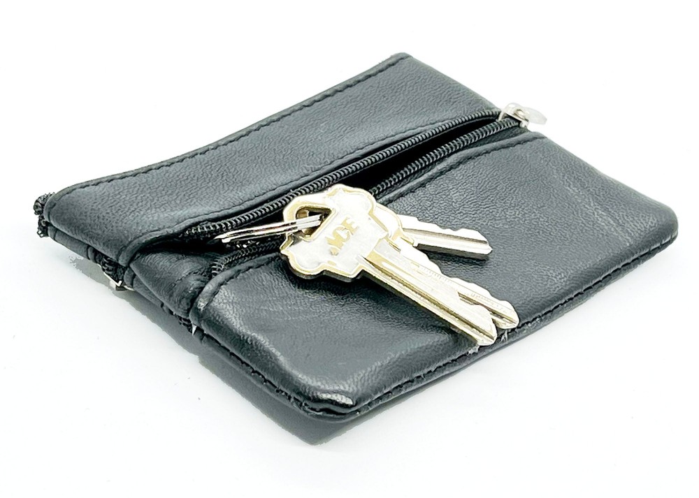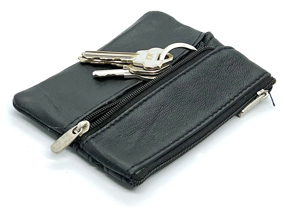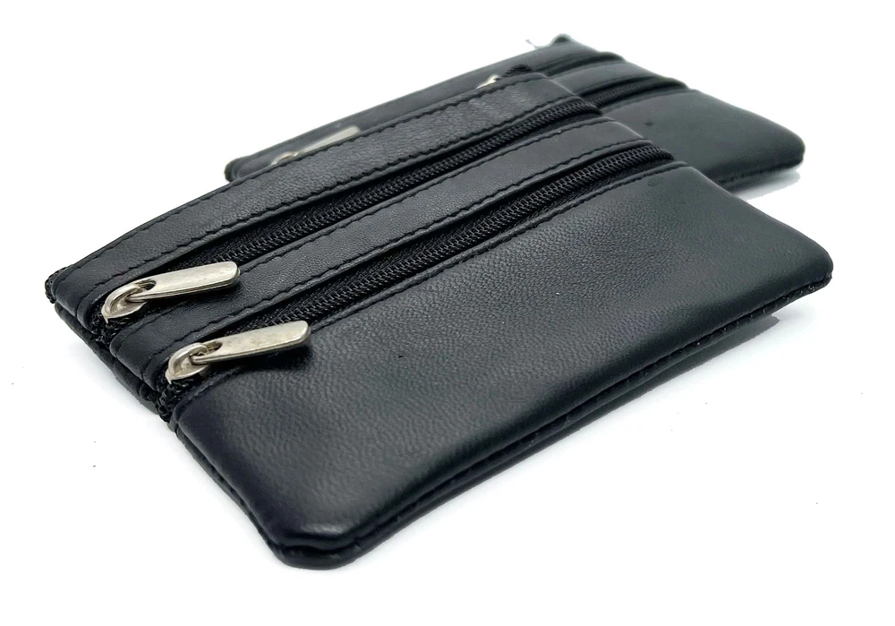 Feature: Condition: New Material: Genuine Leather Zippered Compartments 1 key ring Size: 5" x 3" Estimated