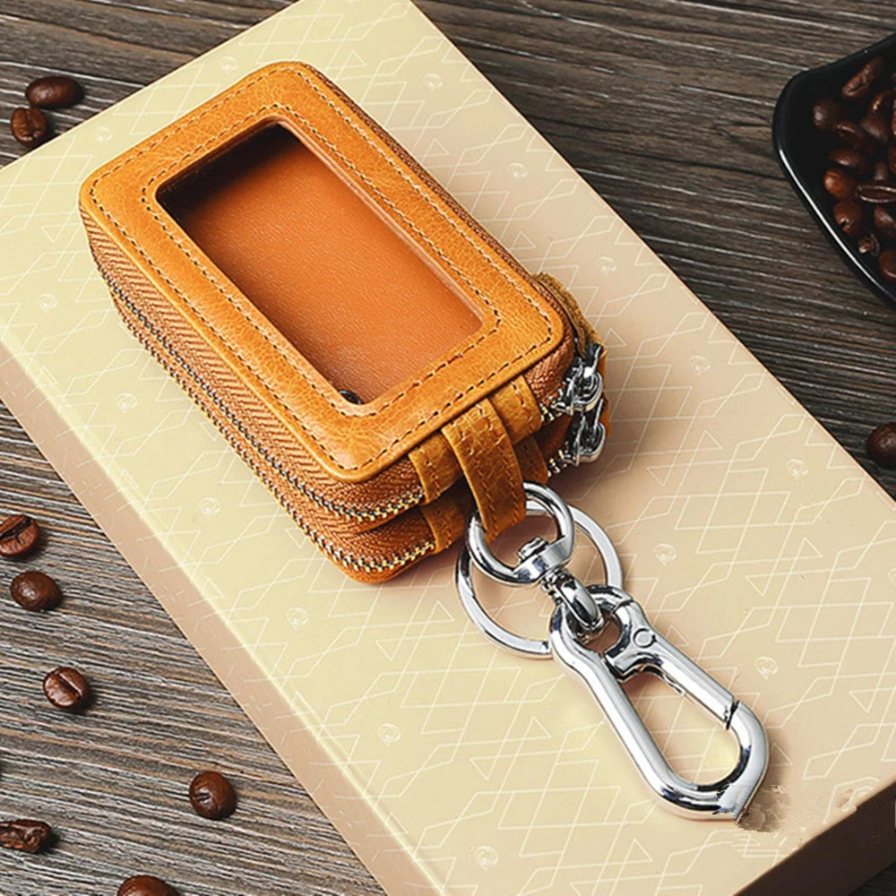 Love this leather key holder! The genuine leather feels premium and durable, while the double-layer design keeps my car key secure yet visible. The zippers glide smoothly, and it’s compact enough to toss in my bag without bulk. Perfect for keeping keys organized and scratch-free—highly recommend for anyone who wants style and function!