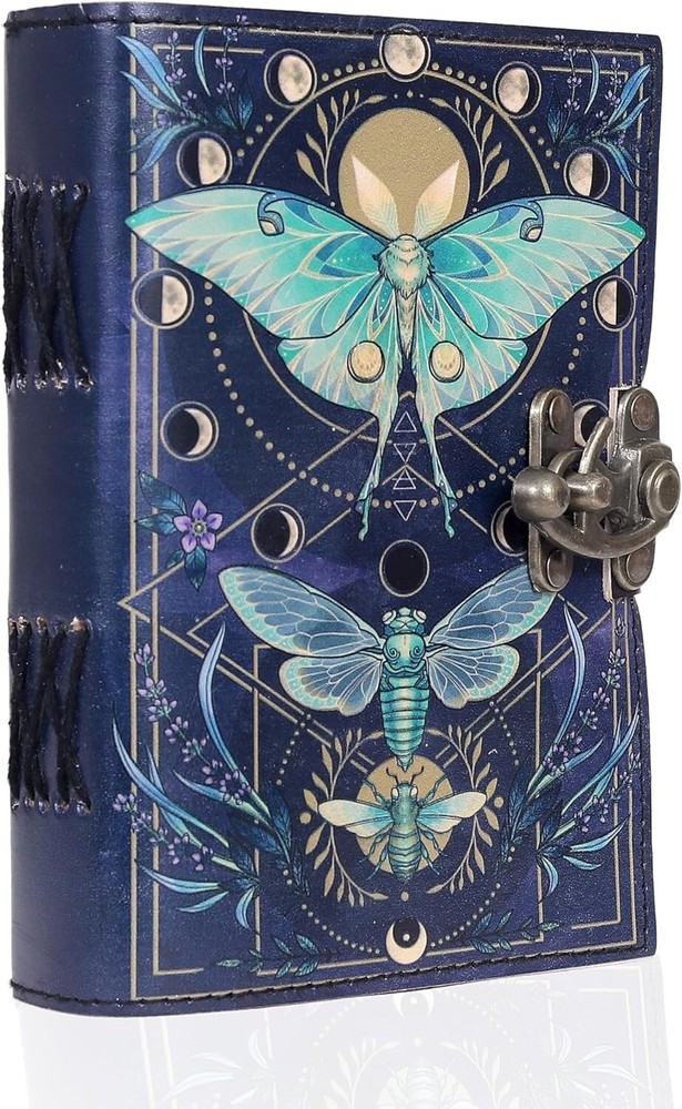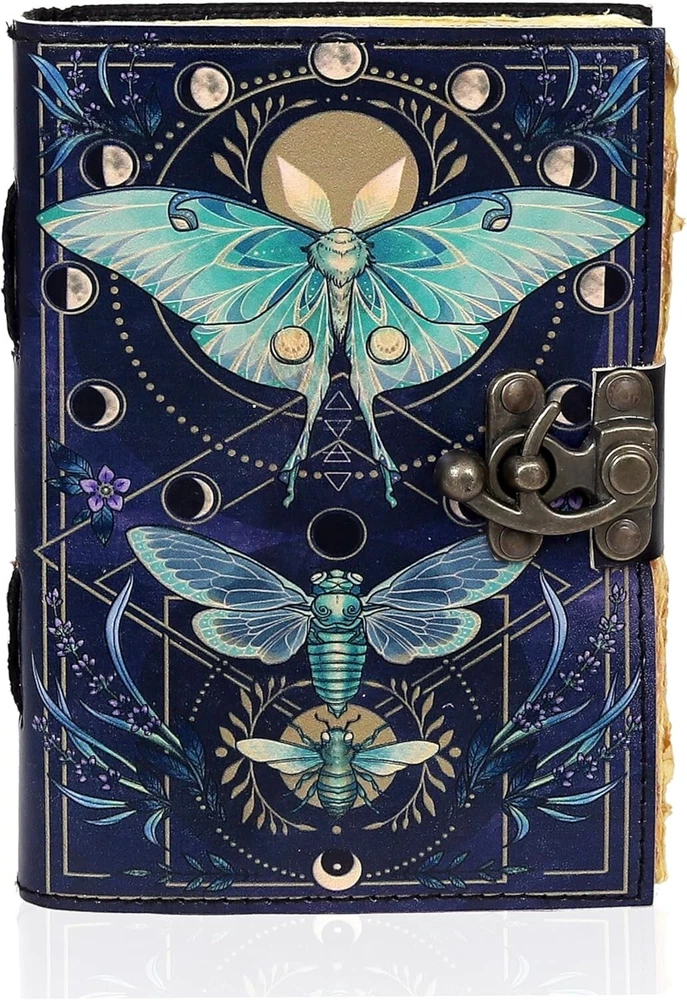 BEAUTIFULLY CRAFTED: Our handmade artisan leatherbound spellbook grimoire journals are crafted from genuine leather. The black colouring gives it a beautiful antique vintage feel. Being hand-made from natural leather. The cover features a beautiful gold designing.. IDEAL SIZE & THICK PAPER: Compact 7"X5" size , easy to carry around or slip into a bag; and not so small that you can’t express any creativity - 240 pages of smooth craft paper allowing the pen to glide effortlessly across the page PERFECT FOR GIVING: Suitable for both men or women to write in, this locking diary daily travelers notebook is perfect for an avid writer, or Harry Potter fan looking for a magic spell book. Ideal to give as a birthday gift, valentines, halloween, graduation or wedding anniversary present. MANY USES - This aesthetic Lovers Journal Can be used as a Hocus Pocus gifts , the lovers tarot journal, gothic notebook, skull journal, spell books halloween decorations, book of spells halloween decor. grimoire spell book, drawing or sketching and compact for carrying in your bag. Ideal for alternative Artist Sketchbooks, Photo Album, Traveling Notes, Business Executive, Logbook, hocus pocus spell book , Journalists, Food Planner, old spell notebook, antique handmade skull journal
